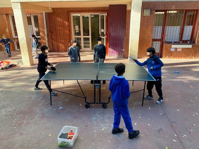 El cicle superior, en el temps de pati juguem a jocs diversos, però hi ha alumnes que trobem a faltar el tennis taula. És per això que l’escola ha comprat pales, xarxes i pilotes per jugar-hi.