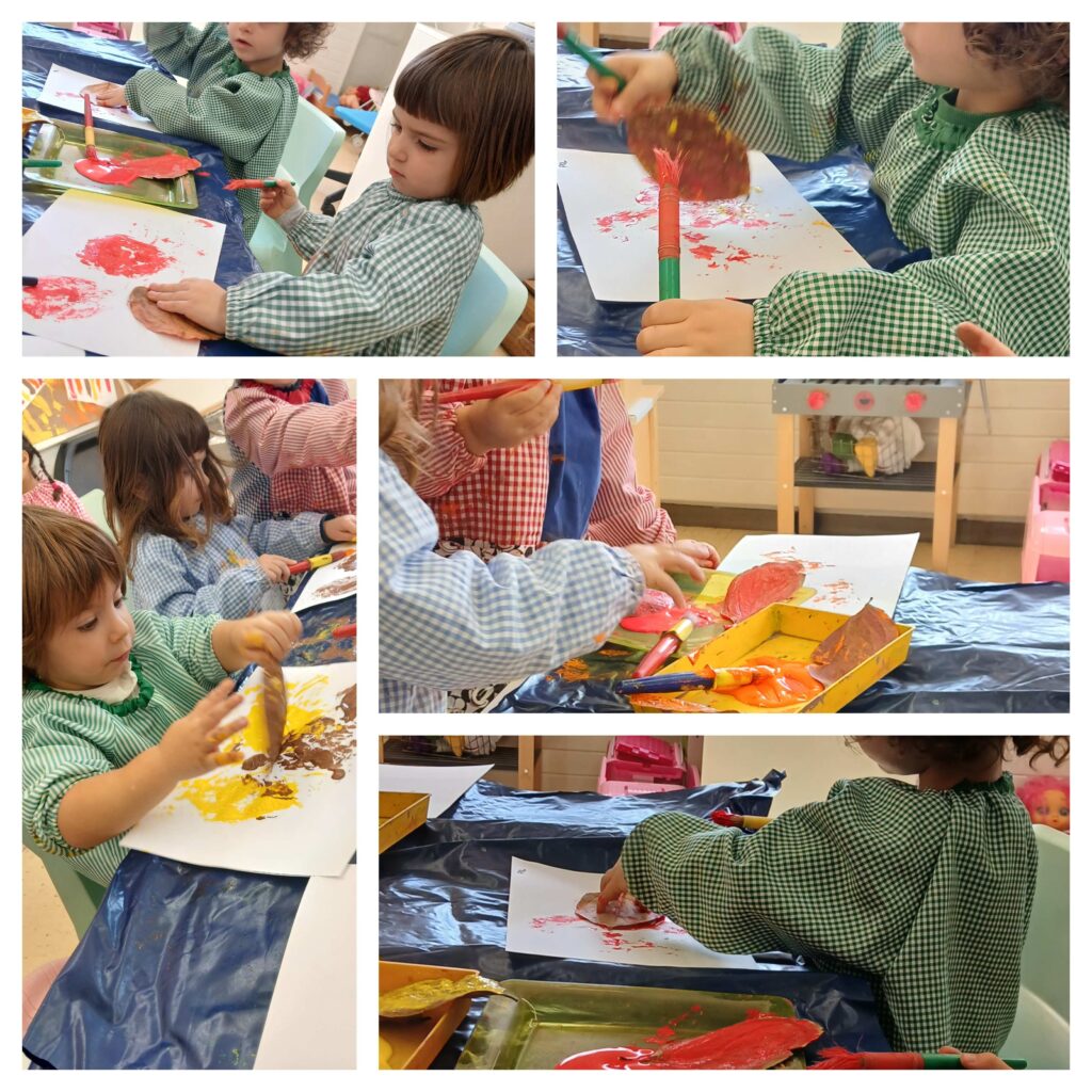 Després, hem fet una activitat plàstica molt divertida: hem pintat fulles i hem creat estampacions plenes de colors. Els infants han experimentat amb diferents maneres de pintar i han deixat volar la creativitat.
