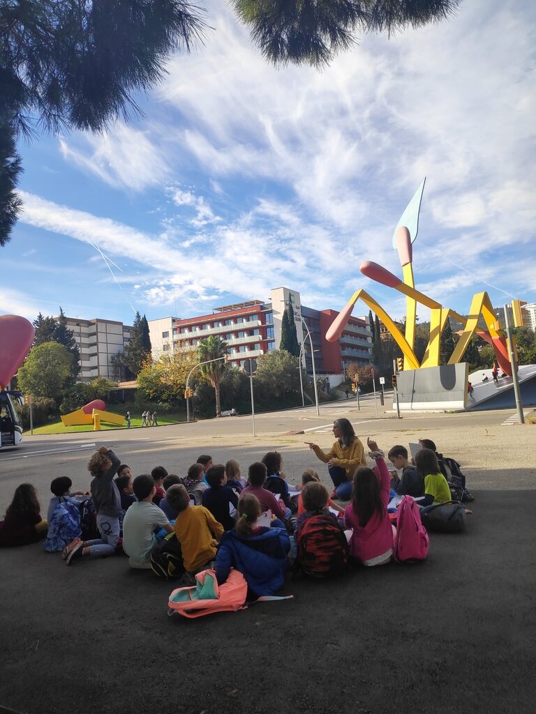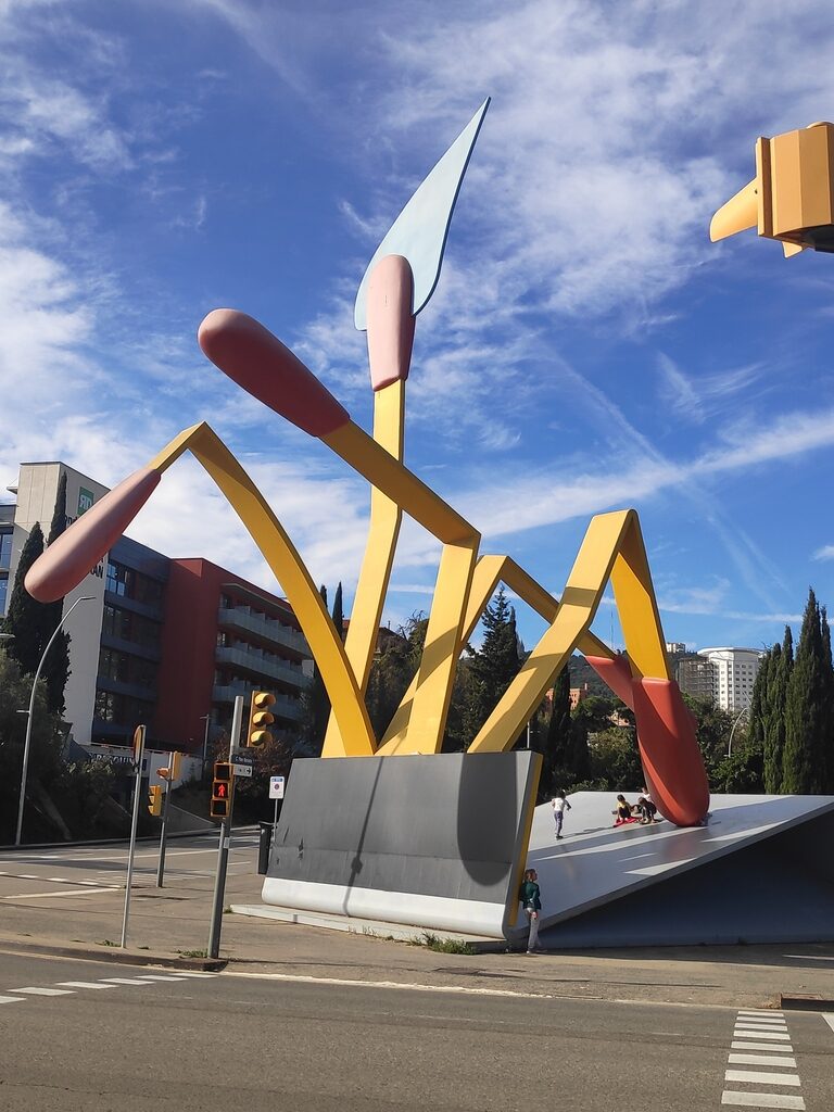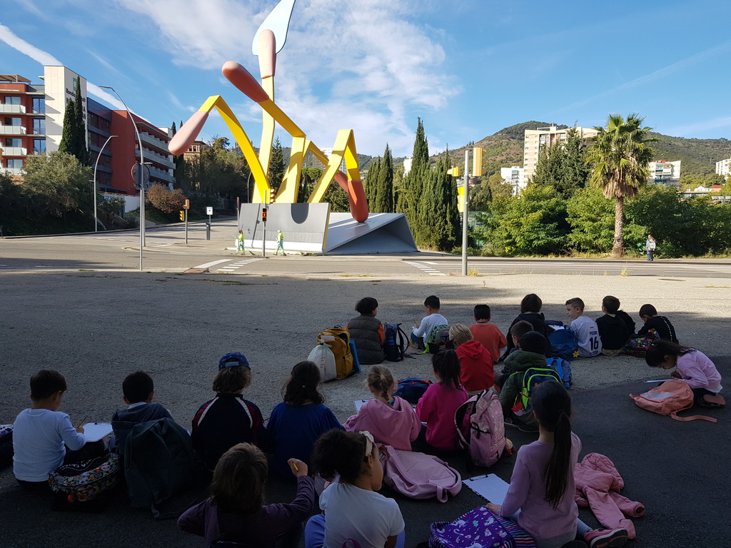 Els coales, les cuineres i els cuiners vam anar a fer una sessió de Filosofia davant d’una de les obres més emblemàtiques del barri: l’escultura de Claes Oldenburg. La vam observar desde diversos punts de vista i vam tenir una conversa per descobrir què era, què volia representar l’artista i què pensàvem que havia passat amb tots aquells llumins que estaven escampats.