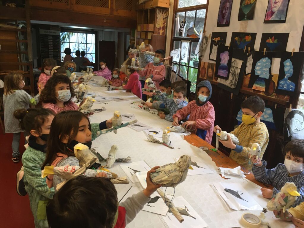 Els esportistes fem un taller a la Nau Feu un comentari / Per Marta Pelay / 5 d'abril de 2022 / Cinquè Romans A la Nau, cada nen i nena realitza amb una tècnica de volum un dels ocells observats als nostres jardins. QUINS ARTISTES!!!