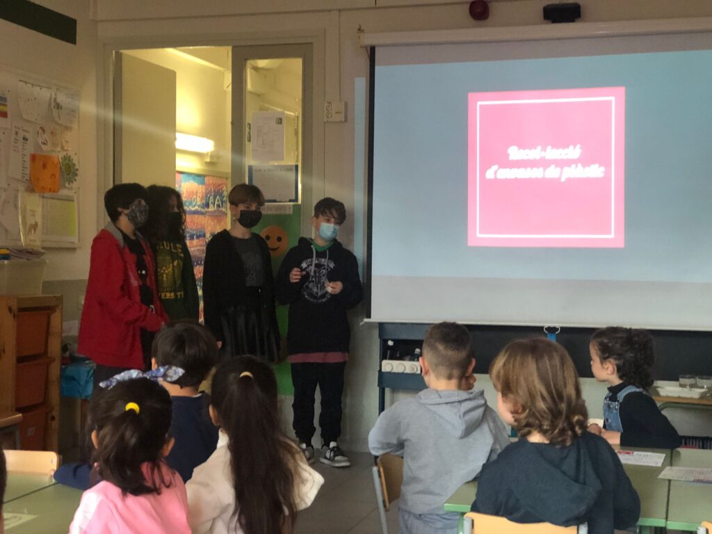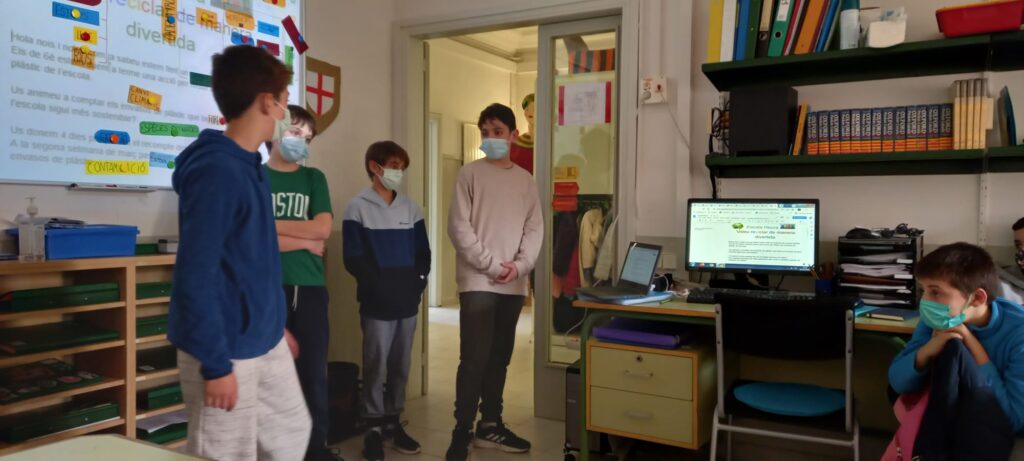 La classe dels Píxels, estem duent a terme un campanya per reduir els envasos de plàstic de tota l’escola.