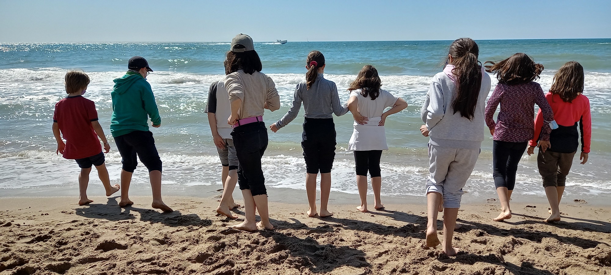 Després de no deixar dormir gaire els mestres, hem esmorzat i en acabar hem anat a la platja a fer uns jocs d’ecosistemes marins i després ens hem remullat els peus. L’aigua estava fredíssima!!!