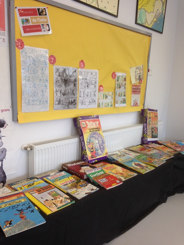 Famílies, el dimarts 23, diada de Sant Jordi podeu entrar a l’escola per visitar l’exposició de còmics de la Biblioteca,