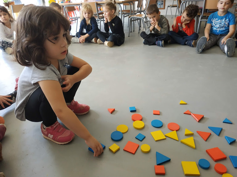 Experimentem amb cubs, esferes, cilindres… Juguem amb els blocs simbòlics, amb el bee bot… Fotos