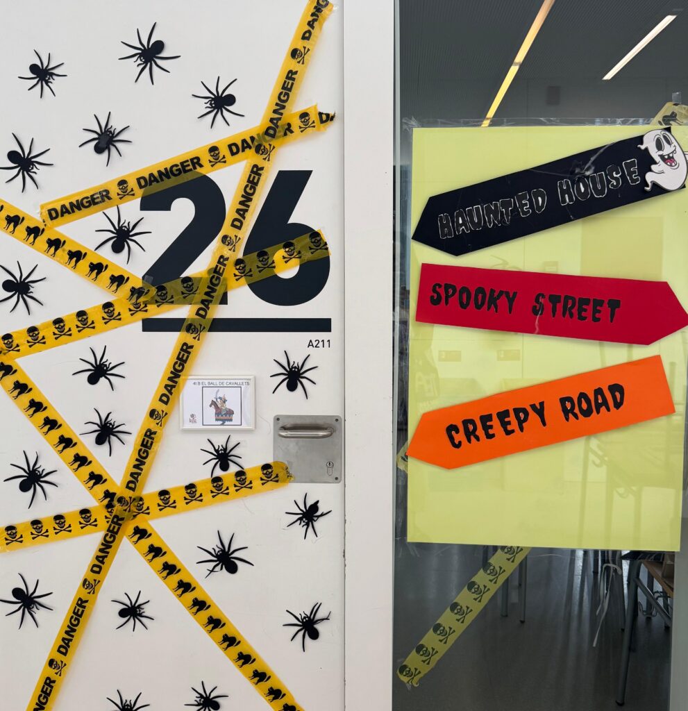 Per acabar, hem jugat a divertits jocs de Halloween: un tres en ratlla amb objectes de Halloween, unes bitlles fetes amb barrets de bruixa, un Escape Room digital i fins i tot hem preparat un photocall per fer fotos ben esgarrifoses i divertides!