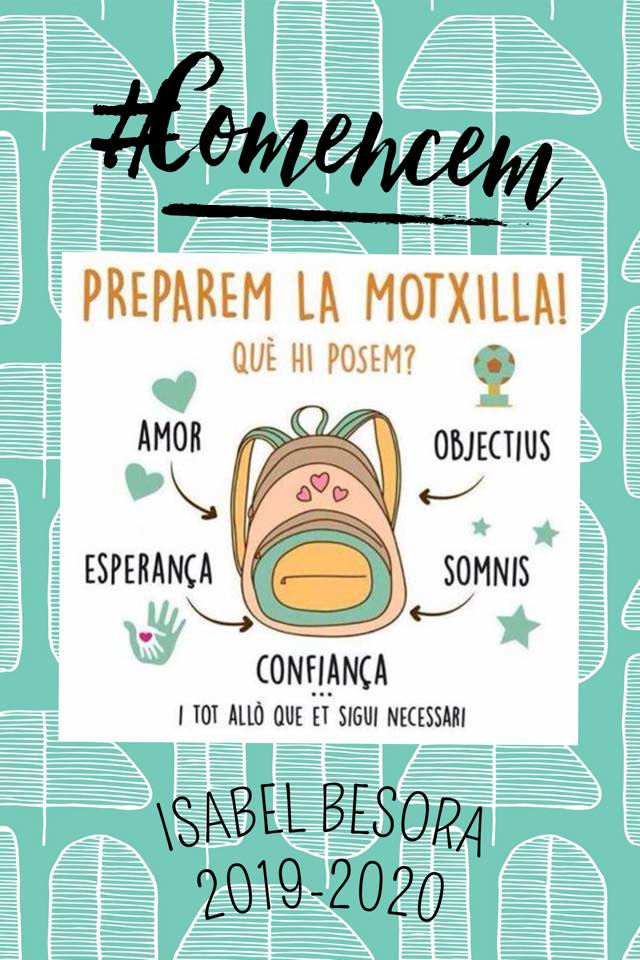 Comencem! Curs 2019-2020 Feu un comentari / Per admin / 10 de setembre de 2019 / General Ja esteu preparats? Els mestres i les mestres ja ho tenim tot a punt! Ens veiem dijous!