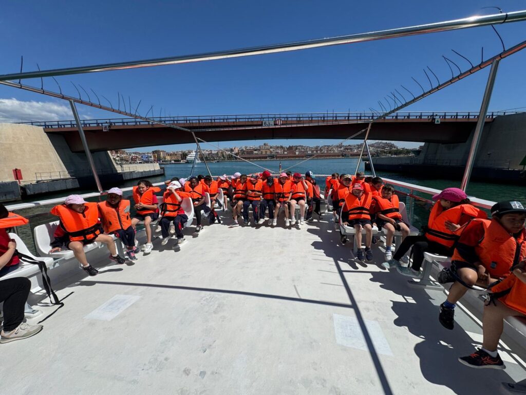 Però això no és tot! Després dels tallers, hem tingut una sorpresa genial: hem pujat a la golondrina i hem fet un passeig pel mar per veure tot el port des d’una altra perspectiva. Ens ha encantat veure de ben a prop els vaixells i les grues en acció, amb el vent a la cara i el so de les onades de fons.