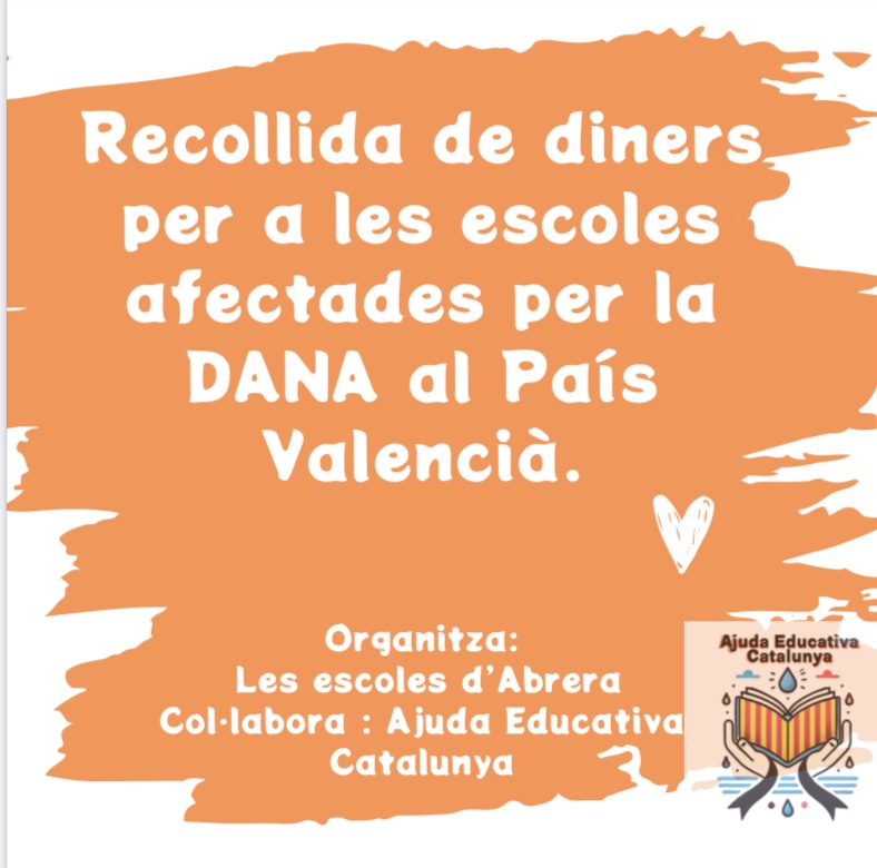 Des de totes les escoles d’Abrera volem expressar el nostre acompanyament i solidaritat cap a tota la Comunitat Valenciana i Castella la Manxa i, sobretot, a totes les escoles i mestres. És per això, que durant tota aquesta setmana i la vinent ens hem afegit… Llegeix més»