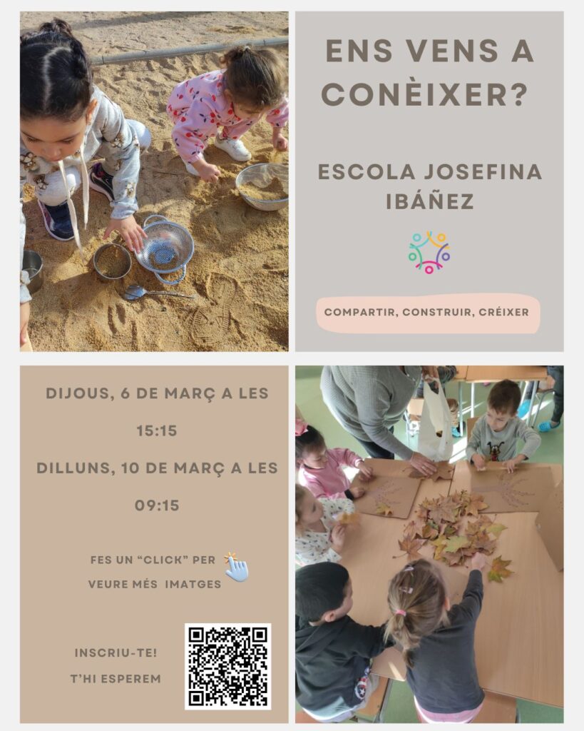 07/02/25Benvolgudes famílies, ens fa molt il·lusió que vingueu a conèixer el nostre Projecte Educatiu i a visitar la nostra escola.
