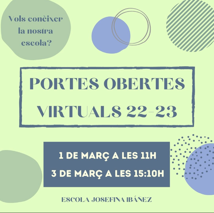 En el cas de l’Escola Josefina Ibáñez les dates de les portes obertes virtuals són les següents: