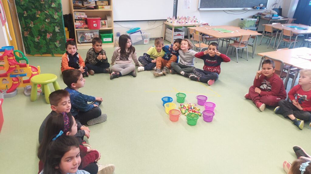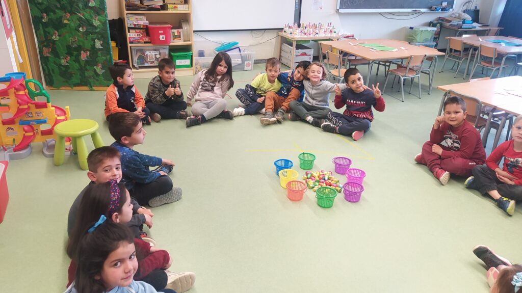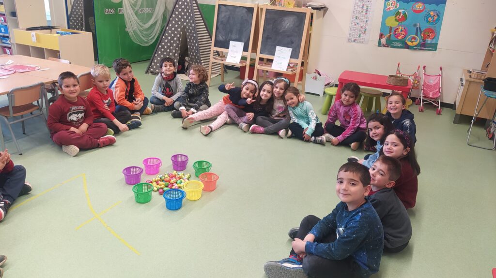 Els dracs i les dragones hem trobat els ous de Pasqüa al pati. Amb nosaltres han participat els padrins i padrines!!