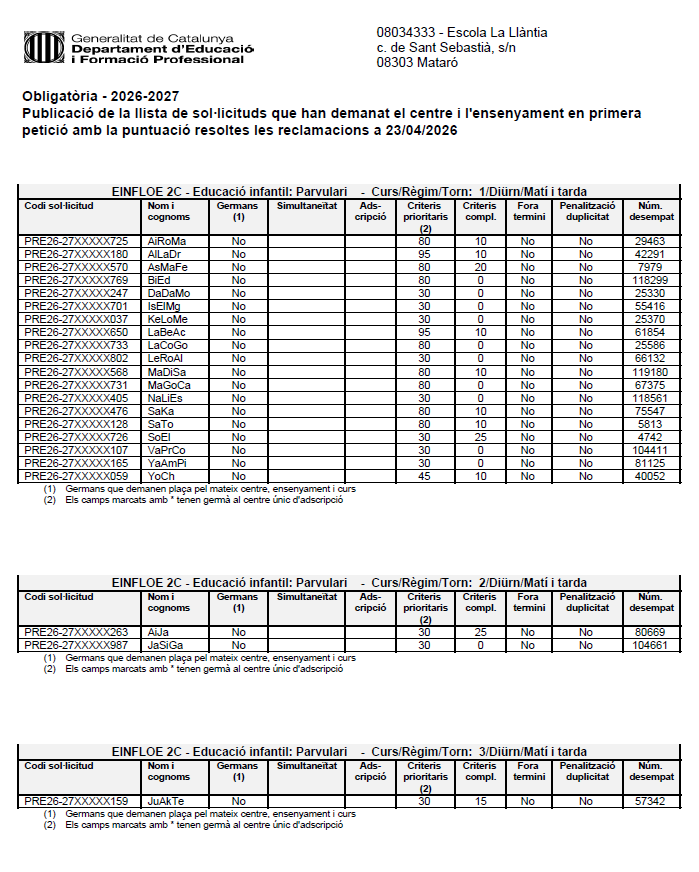 Llistat amb les puntuacions definitives. En aquest apartat trobareu la llista amb les puntuacions definitives, un cop resoltes les diferents reclamacions.
