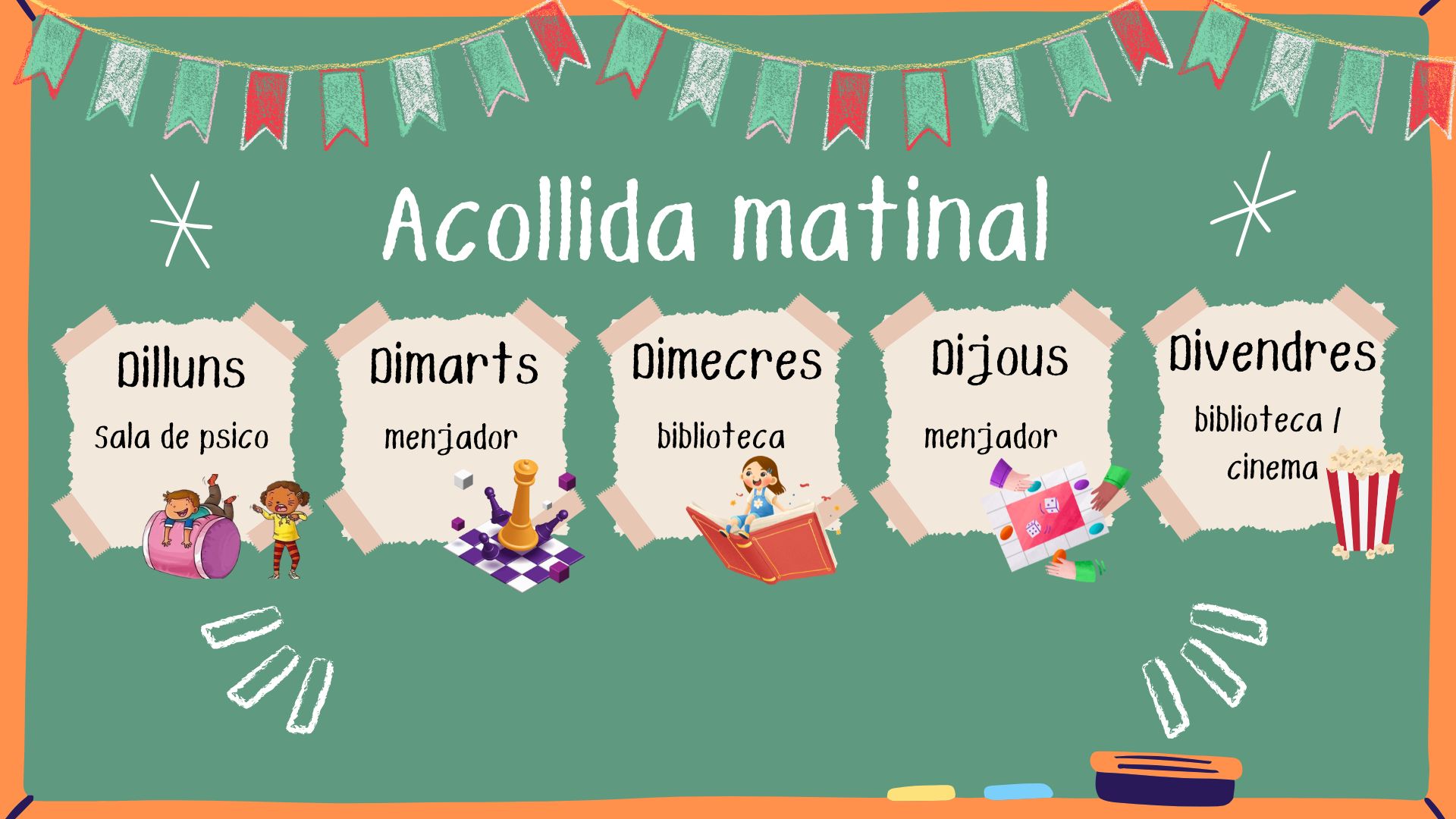 - L’acollida matinal serà de 8:00 a 9:00h.