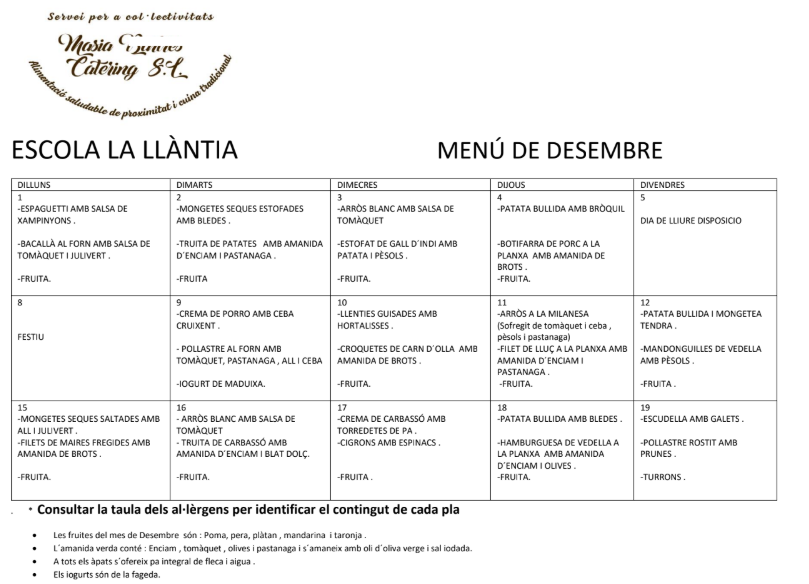 Menú de Desembre