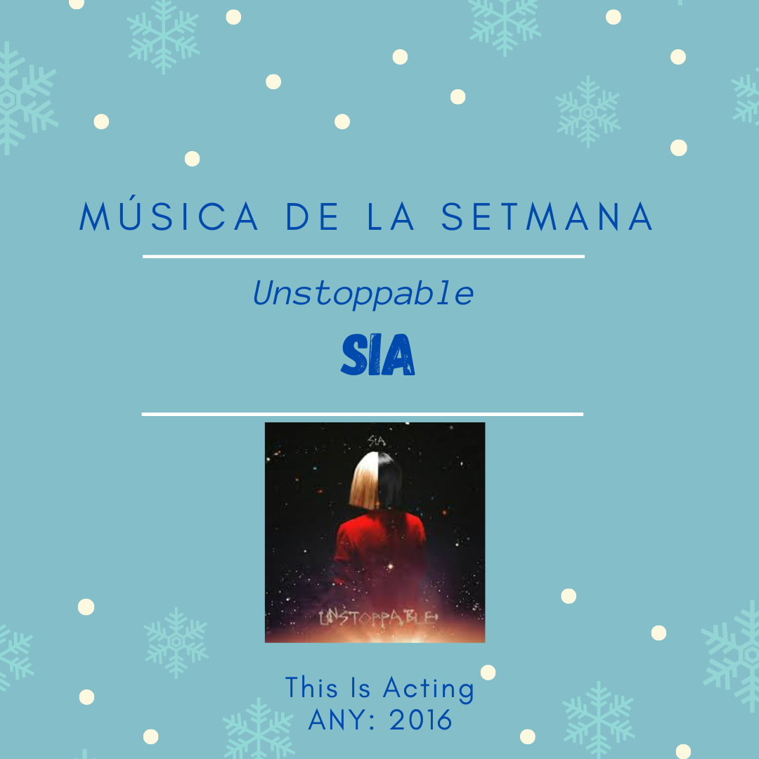 Aquesta setmana escoltarem la cançó “Unstoppable” de la cantat i compositora australiana Sia. Aquesta cançó la podeu trobar a l’àlbum “This is Acting” publicat l’any 2016.