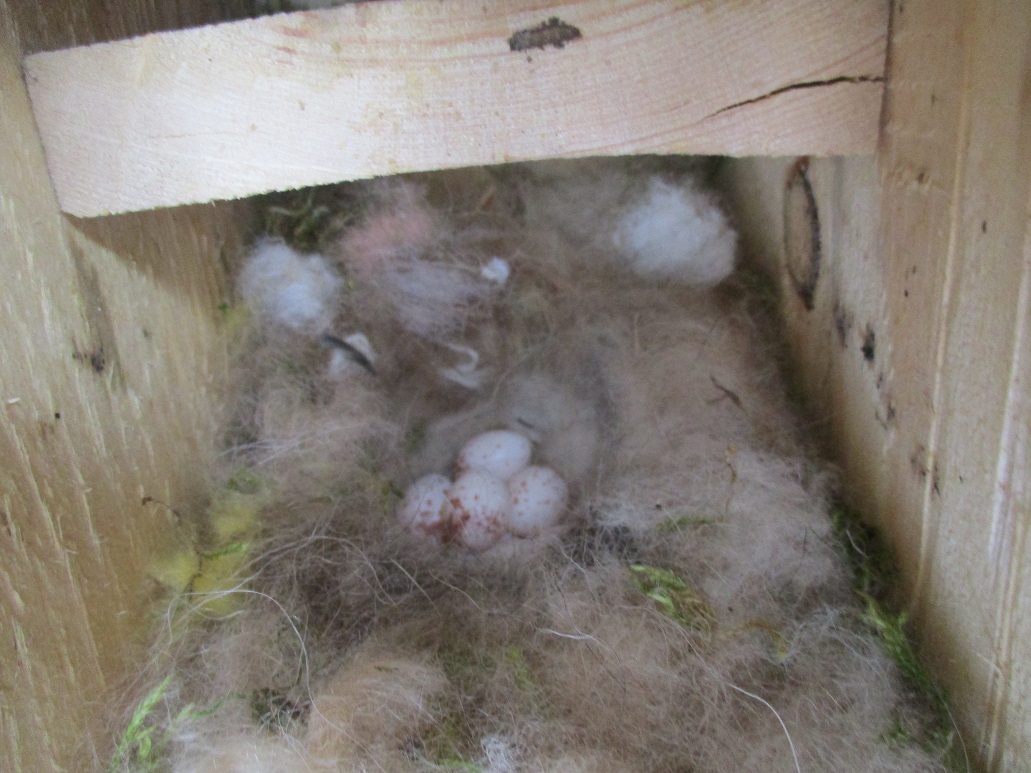Si voleu us puc explicar alguna coseta que us donarà pistes… Les mallerengues carboneres i les blaves fan el niu amb molsa i pel d’animal ( a vegades tb i posen plomes). Els ous que es veuen són de mallerenga. Els pardals fan els nius amb fanals ( herbes seques). Un cop han posat tots els ous estant 15 dies aprox. Covant, i els pollets tardaran un 15 dies més a sortir volant del niu. Està molt bé que feu l’observació i el seguiment, però sobretot tingueu en compte els dies que si aneu obrir la caixa niu quan els pollets són grandets us poden sortir volant!!! Disfruteu molt d’aquest èxit i estimeu molt els ocellets.