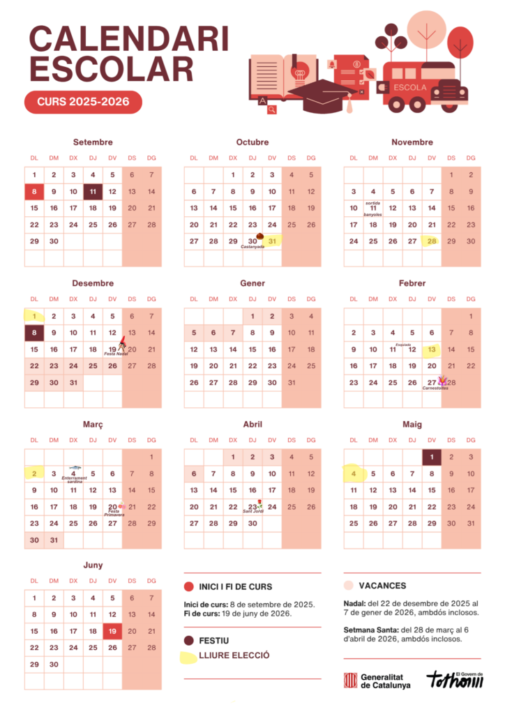 Bon dia Famílies de l’escola de Lliurona. Us donem la benvinguda a tots i a totes al nou curs escolar 2024-2025. Us adjuntem el calendari de dies festius d’aquest curs perquè el pugueu consultar.