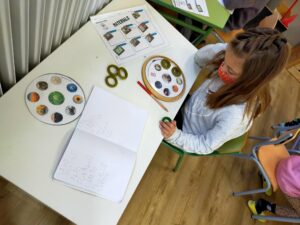 Cada infant agafa el seu pla de treball individual que han elaborat conjuntament amb la mestra amb anterioritat. En aquest document l’infant porta el registre d’aquells materials que ha de dur a term