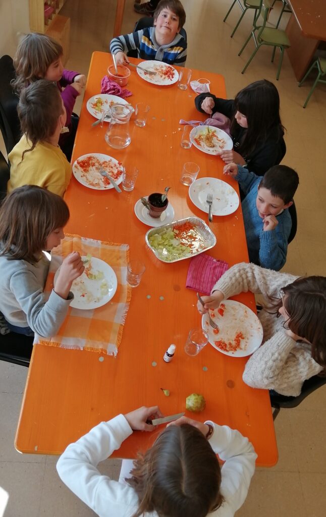 Durant 4 dies a la setmana, 25 infants fixes i un esporàdic fan ús del servei de menjador de l’escola. Aquest servei acull un temps de dinar, un temps d’esbarjo i unes persones que acompanyen als infants durant tota l’estona.