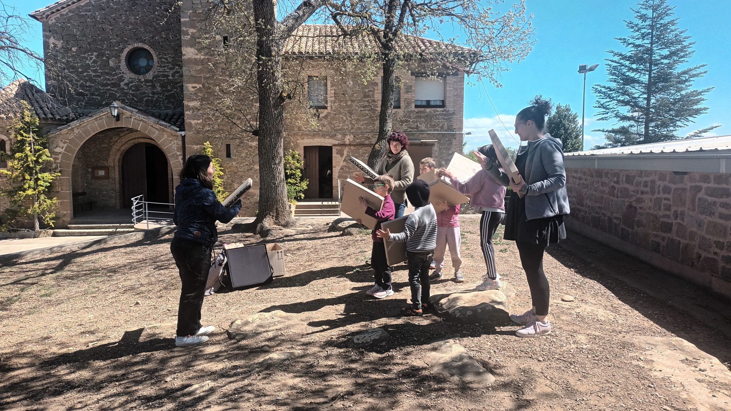 Arribat aquest dia, els grups de cant Tornaveus i Noc, de la mà de l’Heura, ens van oferir un taller de cant de tradició oral acompanyat per un pandero. Aquí vam poder escoltar la veu de l’Heura acompanyada del seu pandero i després, vam cantar conjuntament, la cançó de l’Antònia. Va ser un moment molt bonic on vam poder gaudir del cant en grup envoltats per la natura del bosquet, que va fer que tot el conjunt fos una activitat pels 5 sentits. Després, vam poder practicar la tècnica del pandero amb uns panderos molt particulars… caixes de pizza!