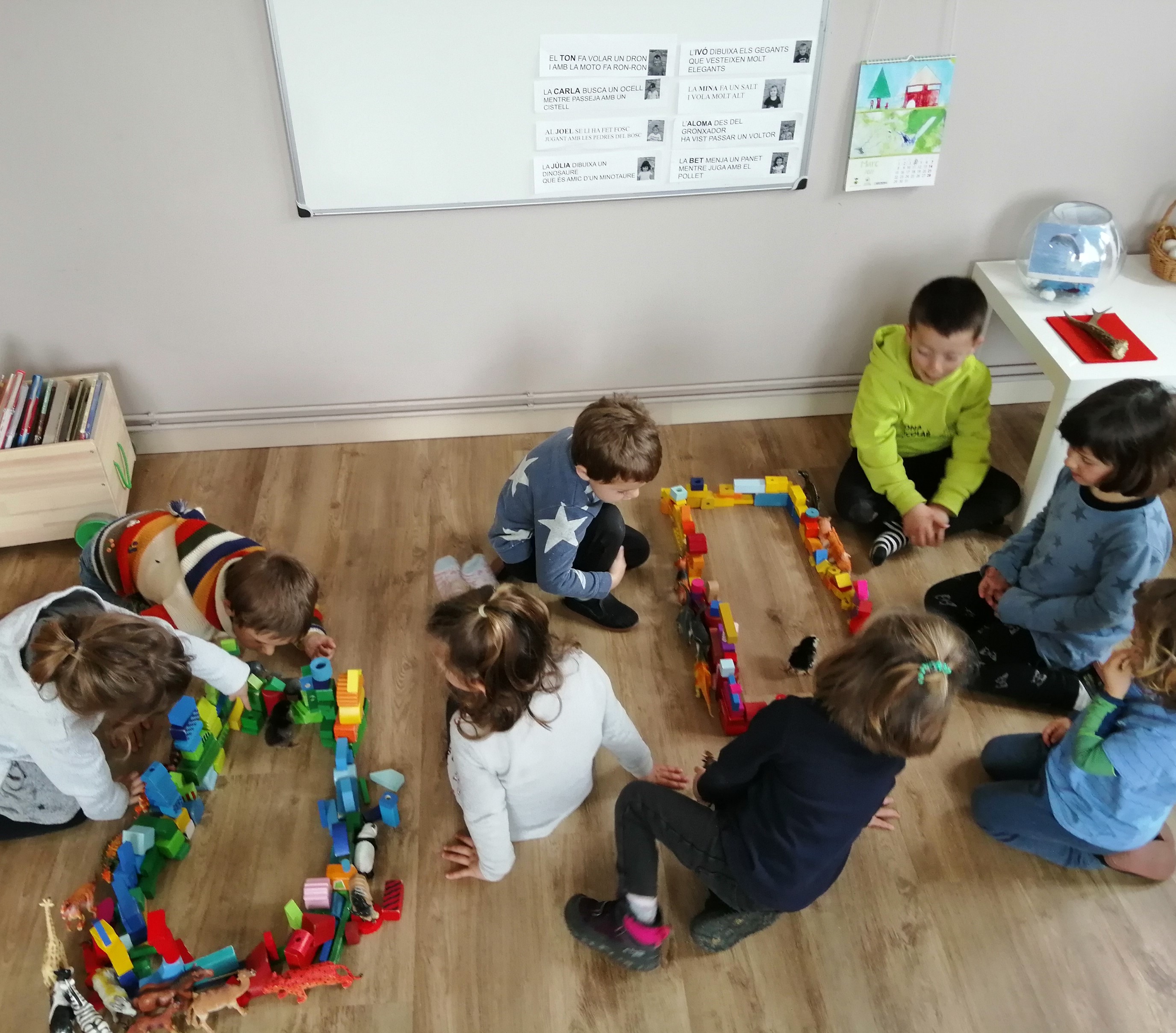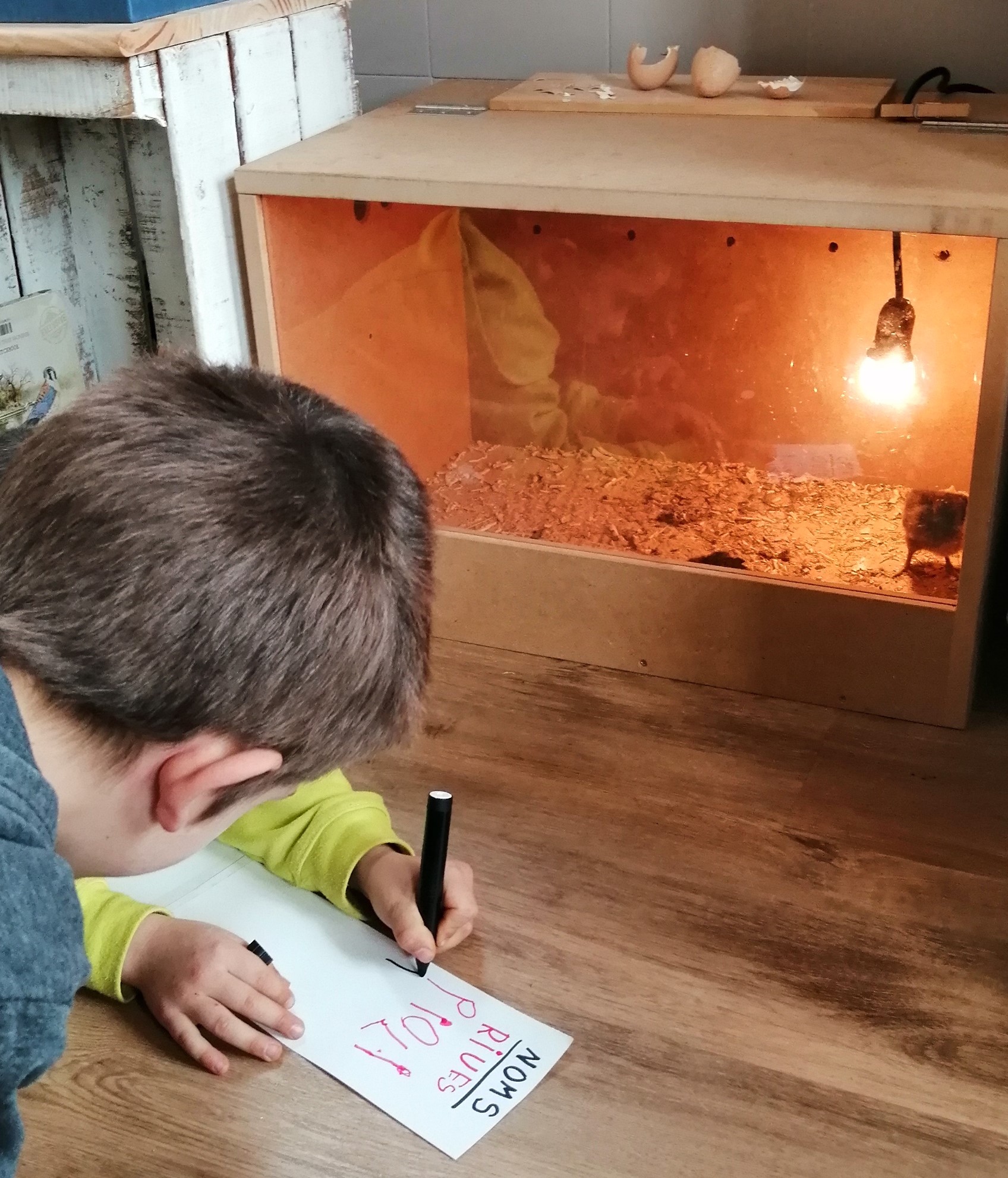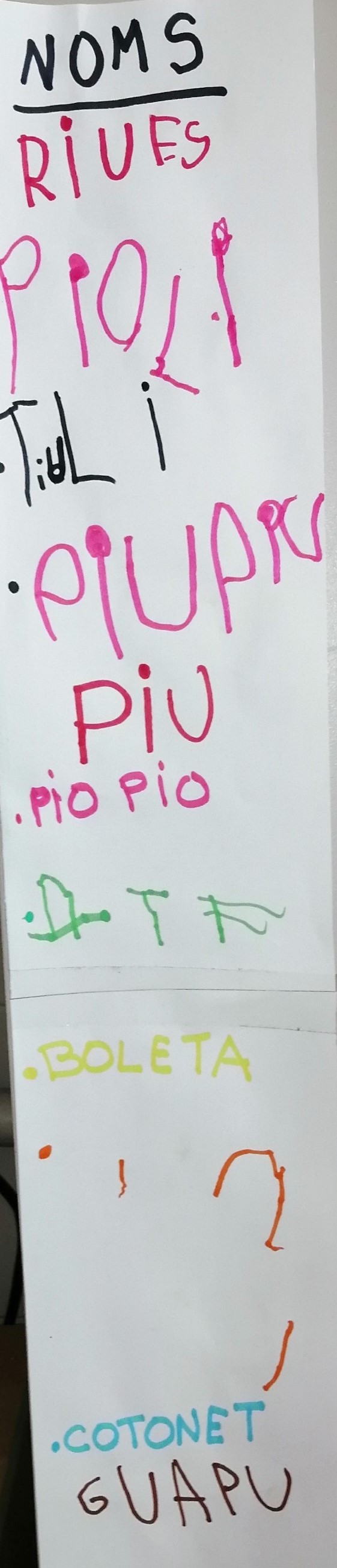 Durant aquesta setmana han habitat un espai acollidor a l’escola on reben aigua, menjar, escalforeta i molta atenció i observació per part de la Llopada. El dimecres després de fer una llista amb els noms que els hi agradaven, van fer un sorteig per triar-ne dos sense saber encara si són gallines, galls o un de cada. «Si algun pollet és una gallina jo li posaria Riua.» «Encara no ho podem posar perquè encara no sabem si seran gallines»… L’atzar va fer que sortís un nom femení i un altre masculí: la Boleta i el Guapo. En el transcurs d’aquesta activitat es van generar algunes preguntes i opinions que em fan pensar, com adulta, per què fem el que fem. «Per què els hi hem de posar un nom?.» «Per què no podem dir cadascú el nom que ens agrada quan ens adrecem als pollets?.» «A mi no m’agraden els noms que han sortit en el sorteig.»