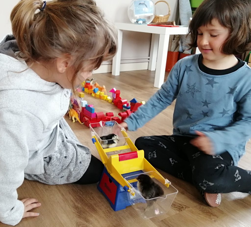 Fa una setmana que la Llopada ha augmentat en dos la família. Després de 22 dies, aproximadament, van néixer aquest dos pollets gràcies a la incubadora que els proporcionava l’escalfor i la humitat que necessitaven. Més enllà de la tecnologia tenim present tota la força, el seguiment, la il·lusió, les preguntes, la cura i l’amor d’uns infants que miren la Vida amb curiositat i admiració.