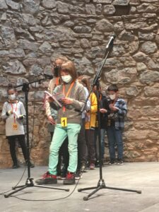 Aquest certamen és concebut per a ser treballat col·lectivament i així ho hem fet a l’escola i, entre tots, hem escollit els nostres representants que portaven una mica de cadascú de nosaltres dins seu en el moment que van pujar a l’escenari i van començar la seva lectura. No es fomenta la competitivitat sinó l’afany de superació i l’autoexigència dels nois i les noies.