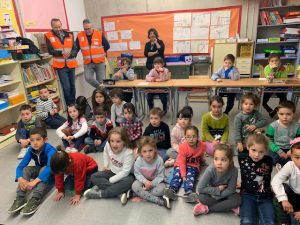 Els més petits de l’escola, els alumnes de P3 i P4, inicialment van fer el joc de les cadires per tal de reconèixer els diferents colors dels contenidors. Després van fer una activitat pràctica on havien de llençar cada residu al cubell corresponent.