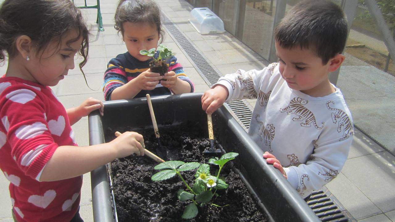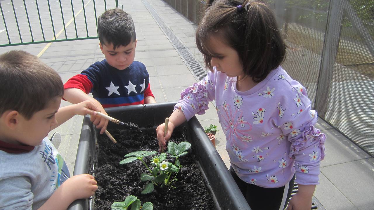 Els Dracs i les Momerotes hem estat cuidant les nostres plantes, les hem regat, observat, dibuixat i representat de moltes maneres. Hem sembrat maduixeres i observat com han crescut. Aviat podrem menjar maduixes del nostre hort!