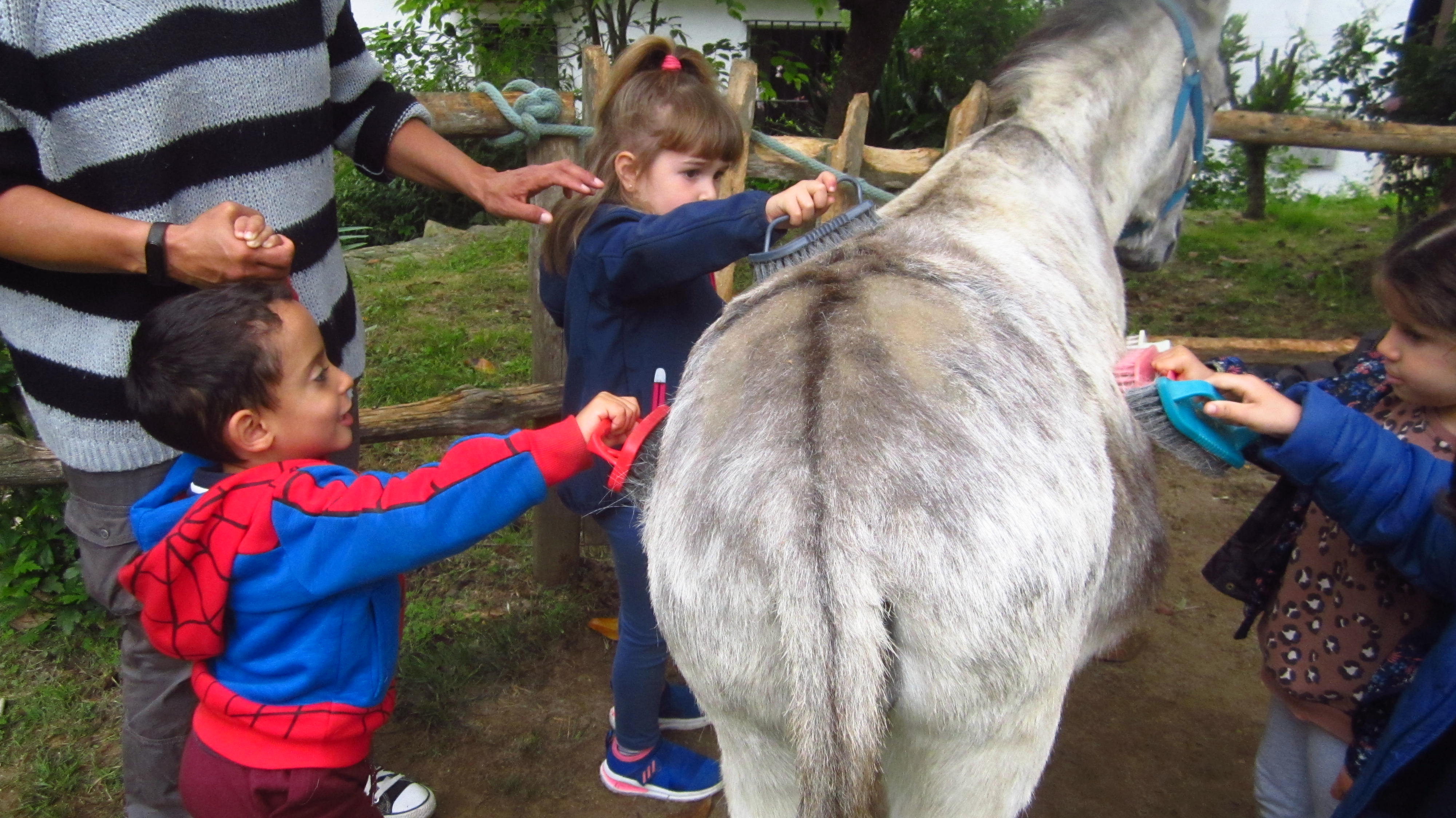 També hem tocat els animalets: conillets, cabrits,…. i els hem cantat les cançons que hem après a l’escola: “El gall i la gallina”, “La granja”….