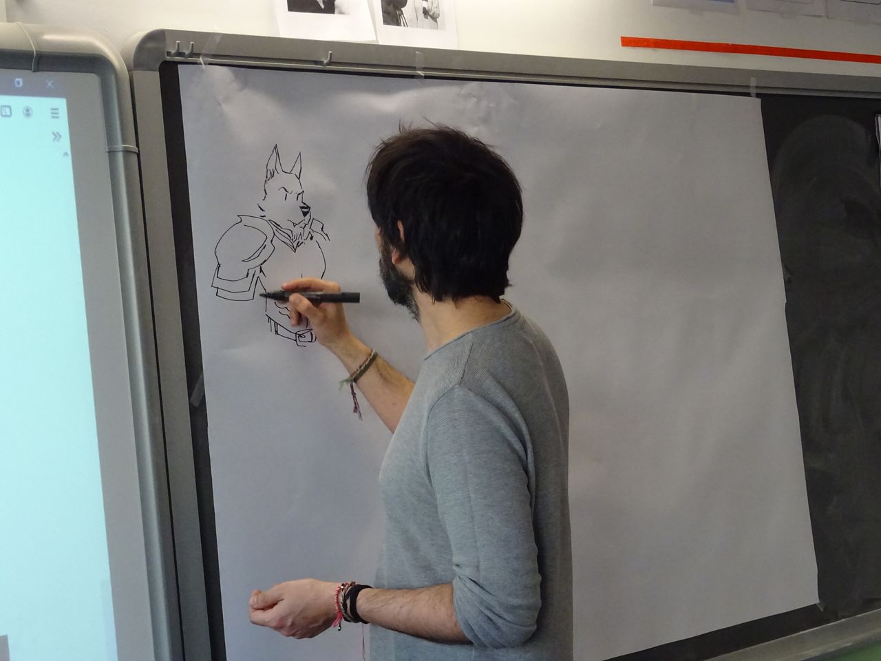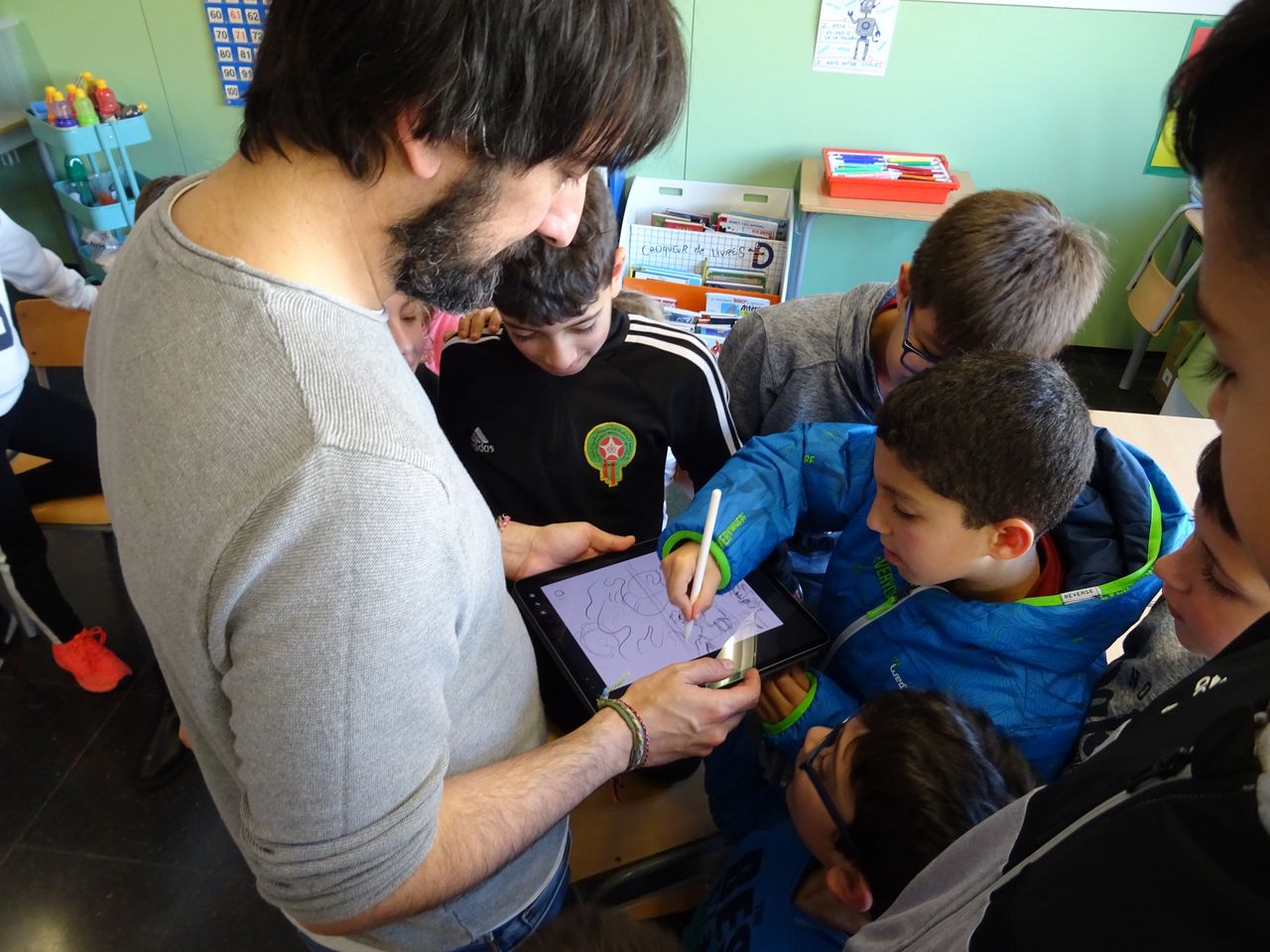 Que a l’escola vinguin pares, mares, avis o familiars a ensenyar-nos alguna cosa sempre és interessant i enriquidor pels nens… però si a més a més qui ve és un professional de prestigi internacional, aleshores és un privilegi. Aquesta sensació van tenir els nens i nenes de la classe d’en Jonas quan van rebre la visita de Josep Homs, conegut dibuixant de còmics i tiet de l’Aina. Durant tota la tarda ens va ensenyar com es dibuixa un còmic i ens va regalar un original preciós. Una tarda inoblidable.