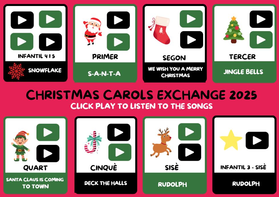 Dins les activitats d’aquesta última setmana cal destacar el ja tradicional intercanvi de cançons en anglès de tots els infants de l’escola. Us deixem el recull dels vídeos de les diferents actuacions. Esperem que ho gaudiu molt.