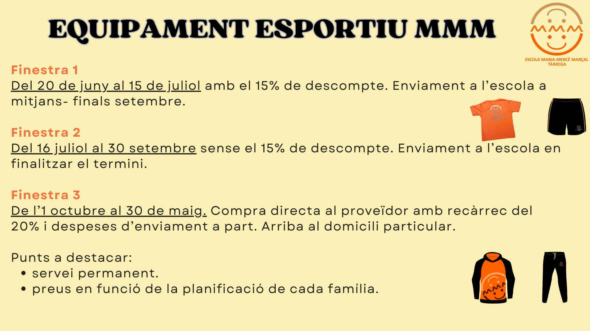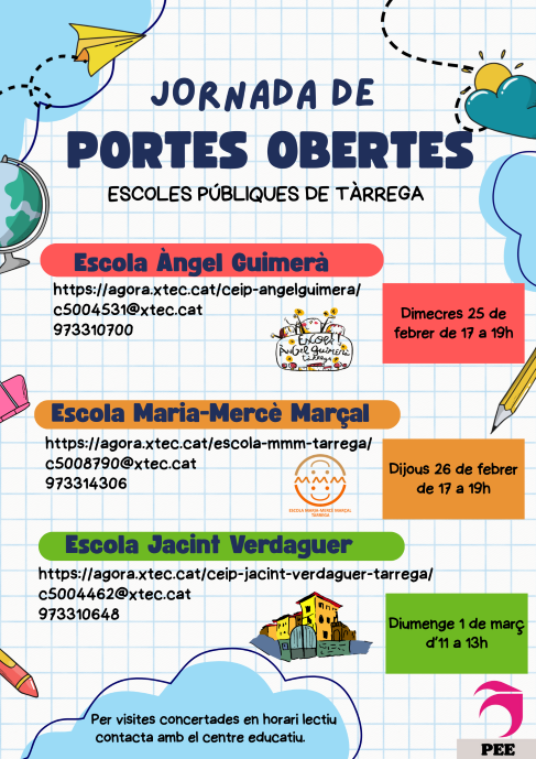 El proper dijous 26 de febrer tindrà lloc la jornada de portes obertes a l’escola en vista a la preinscripció per al curs 2026-2027. L’escola obrirà les portes a les 17h, seguidament es farà una xerrada informativa al gimnàs (17.15h) i un cop finalitzada, es faran visites guiades pel centre en grups reduïts. En cas […]
