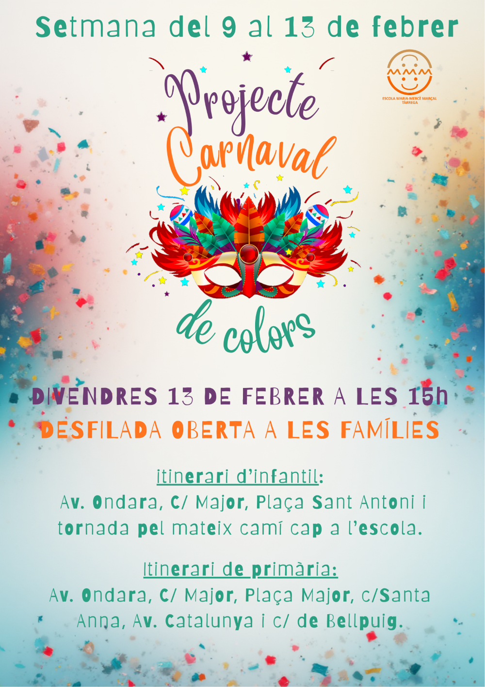 La propera setmana, del 9 al 13 de de febrer, celebrarem la setmana de Carnaval a l’escola. Uns dies plens d’alegria i disbauxa on petits i grans seguirem les consignes per ser un poca-solta.