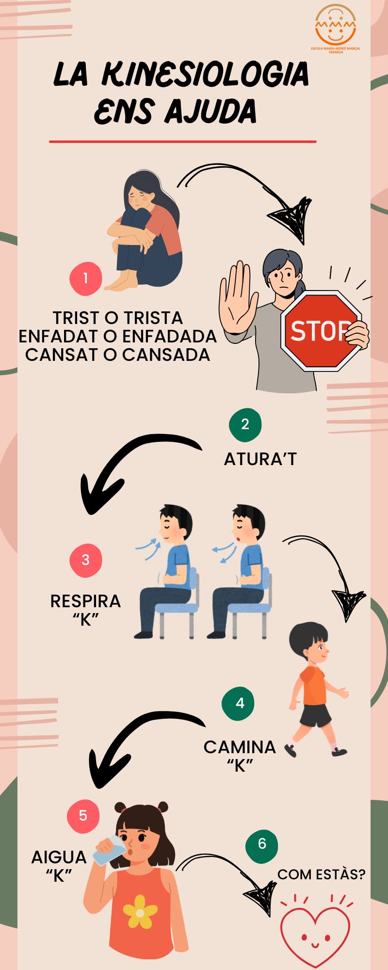 L’Anna Ardèvol, que va ser mestra de la nostra escola, ens orienta i ajuda periòdicament en el treball de la kinesiologia.