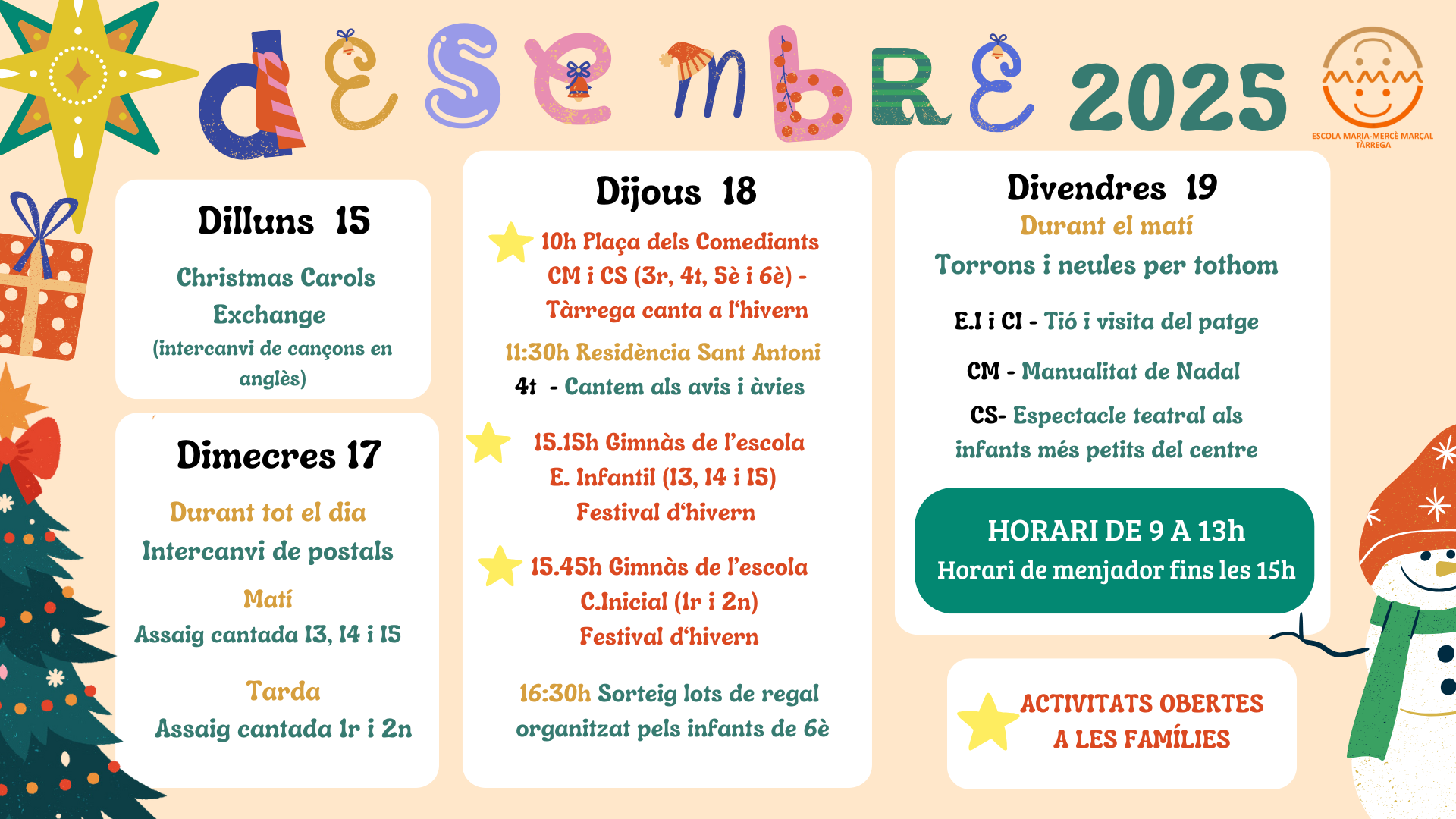 Ja tenim aquí el calendari d’activitats d’aquest final de trimestre.