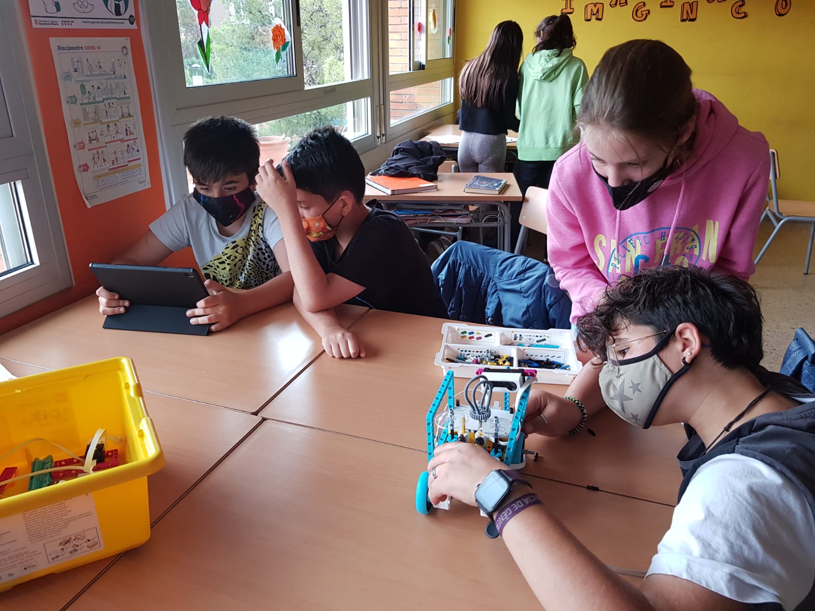 La classe de 6è B, hem fet sis grups i estem treballant amb el material de Robòtica!