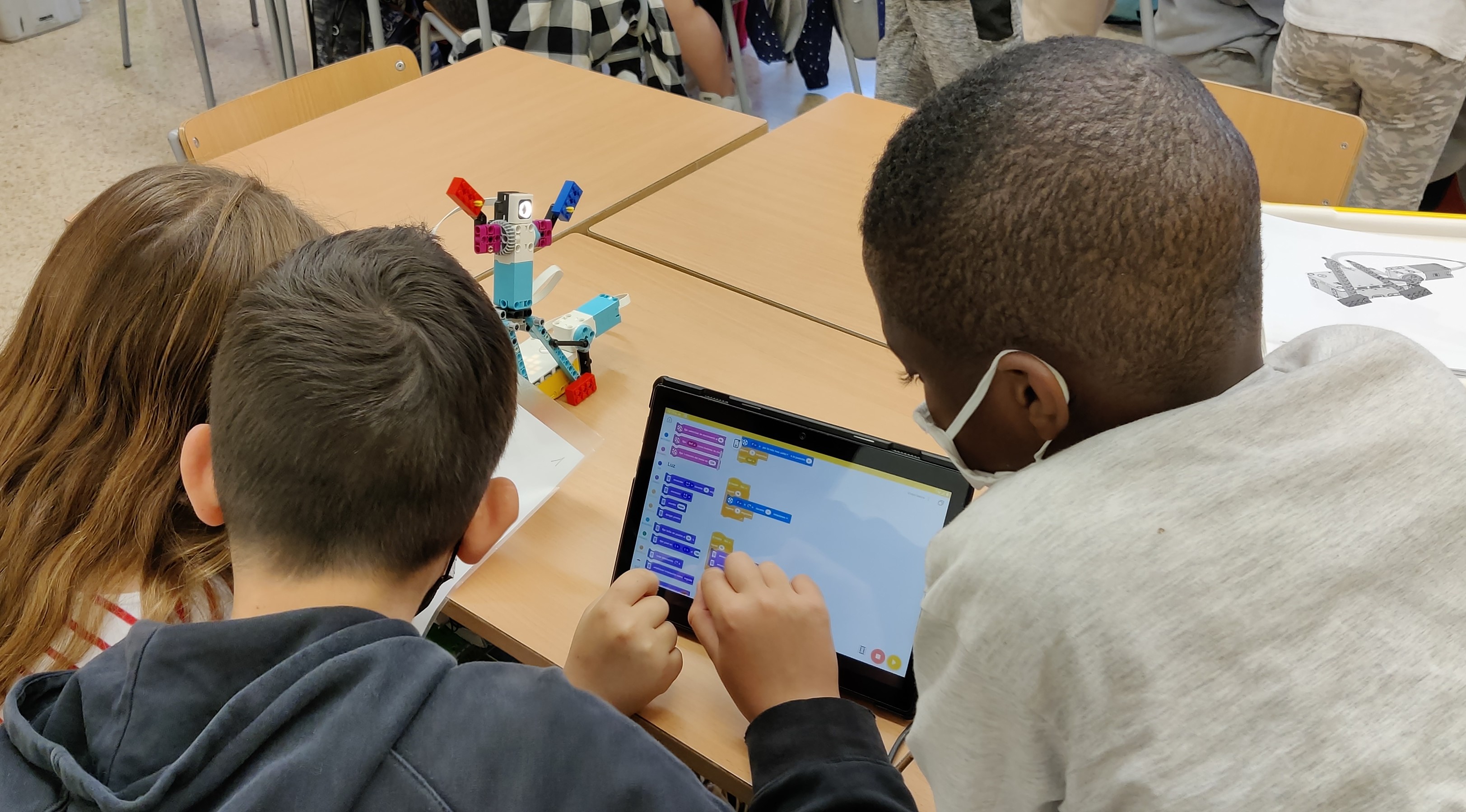 Cada grup ha muntat un model i ha programat amb les tauletes perquè realitzin diferents moviments.