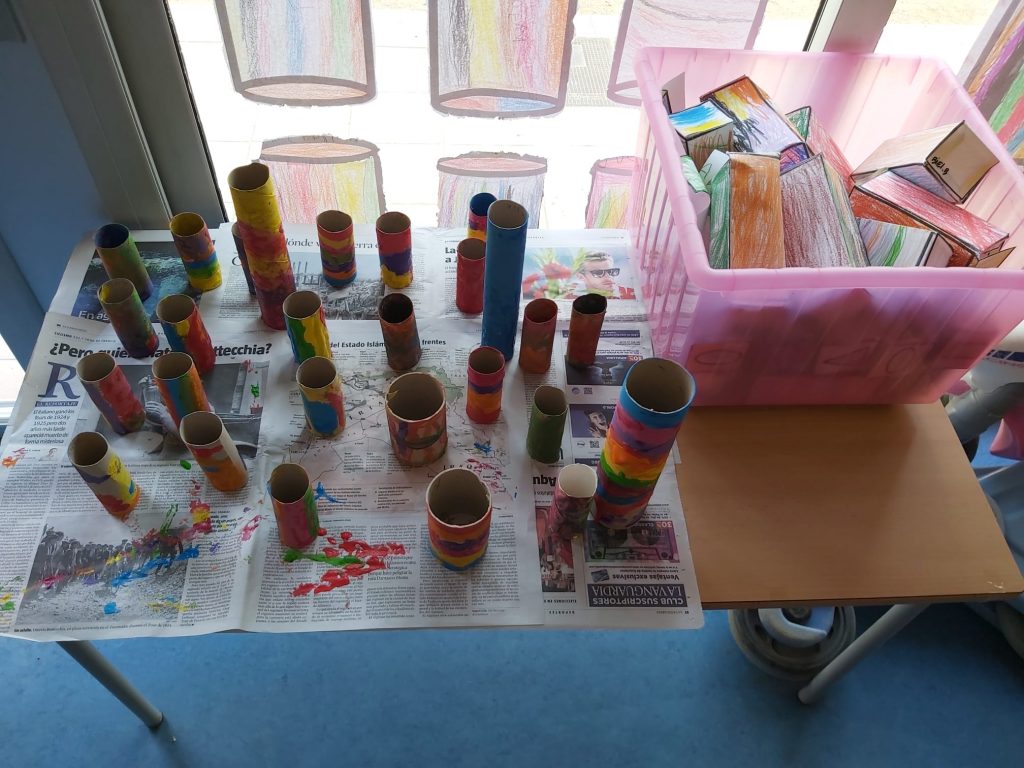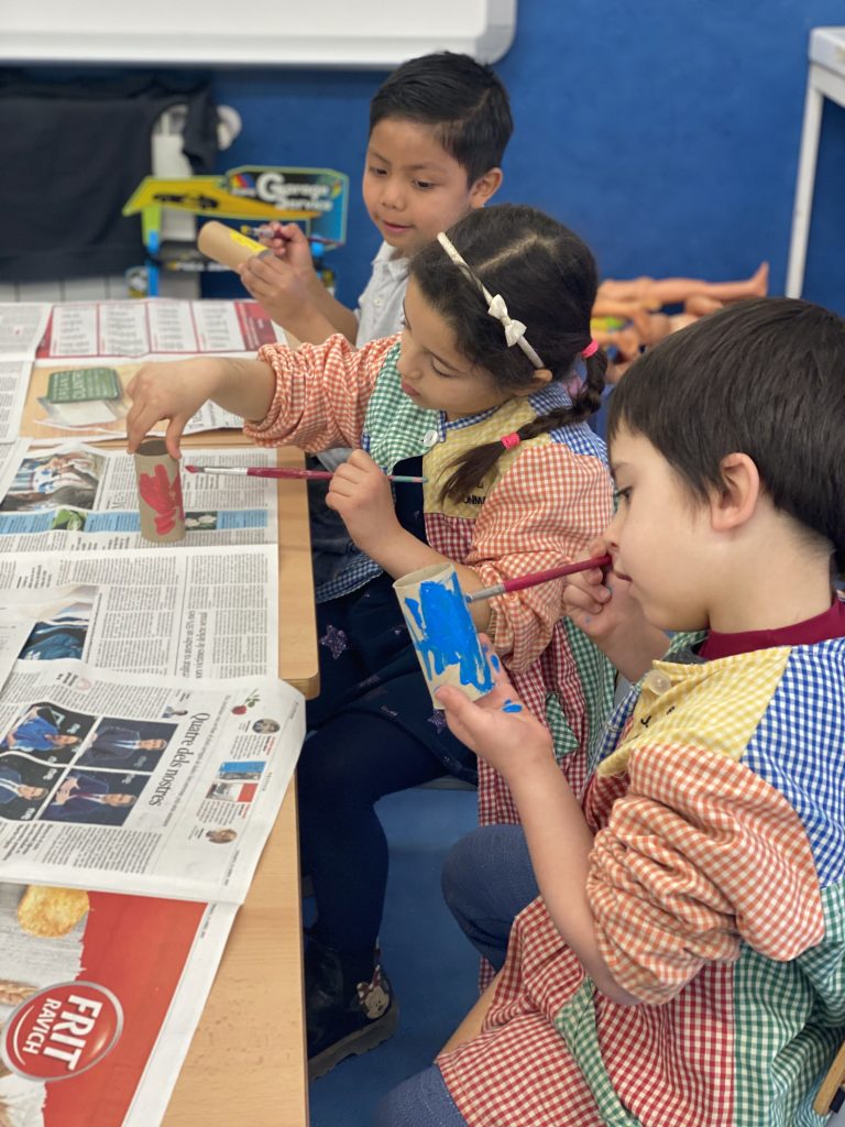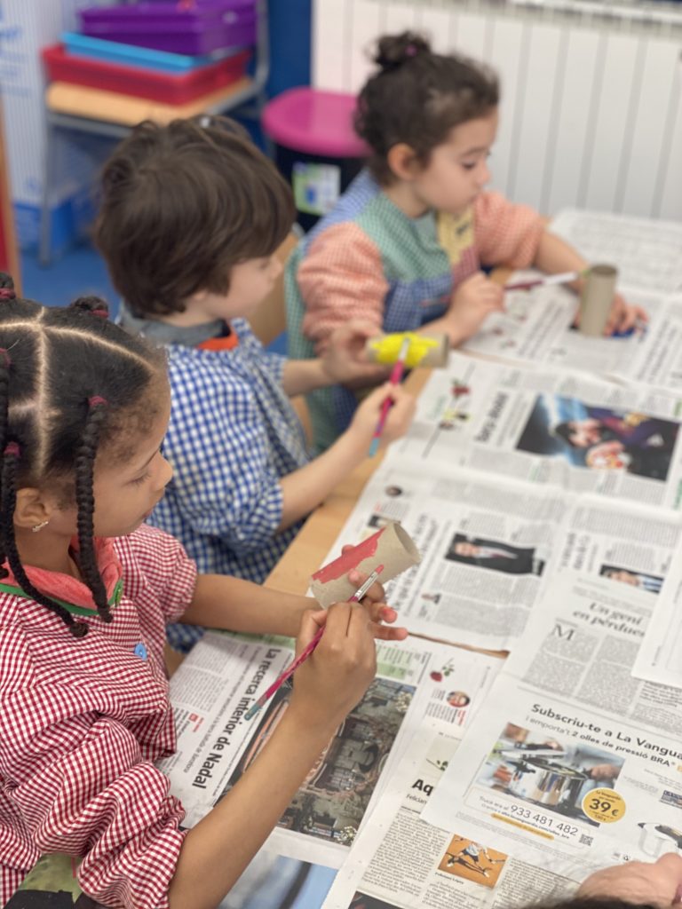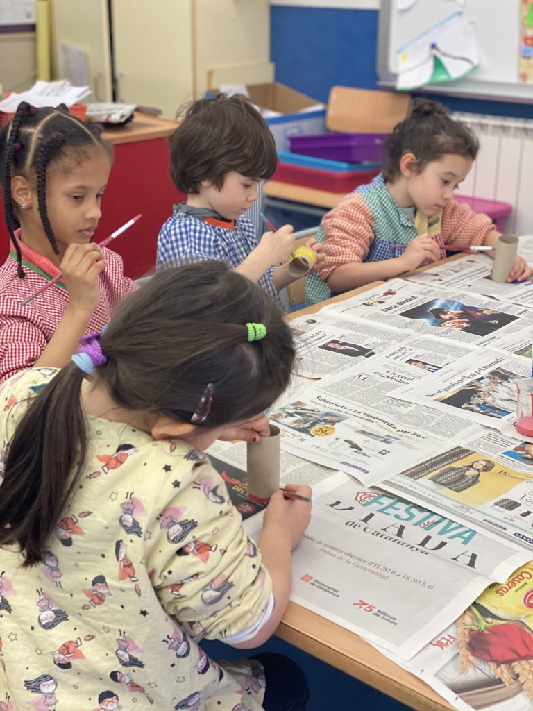 Hola, famílies! Aquesta setmana les gralles i les trompetes hem repassat el cilindre i el prisma. Ho hem fet en paper, pintant amb molts colors diferents i punxant-los, però també ho hem fet amb rotllos de paper del WC i de cuina amb pintura per tal de representar-los amb volum. Per tant hem fet la representació del mateix en dues dimensions, tot i que aquestes formes geomètriques en tenen tres. Ens ho hem passat d’allò més bé!