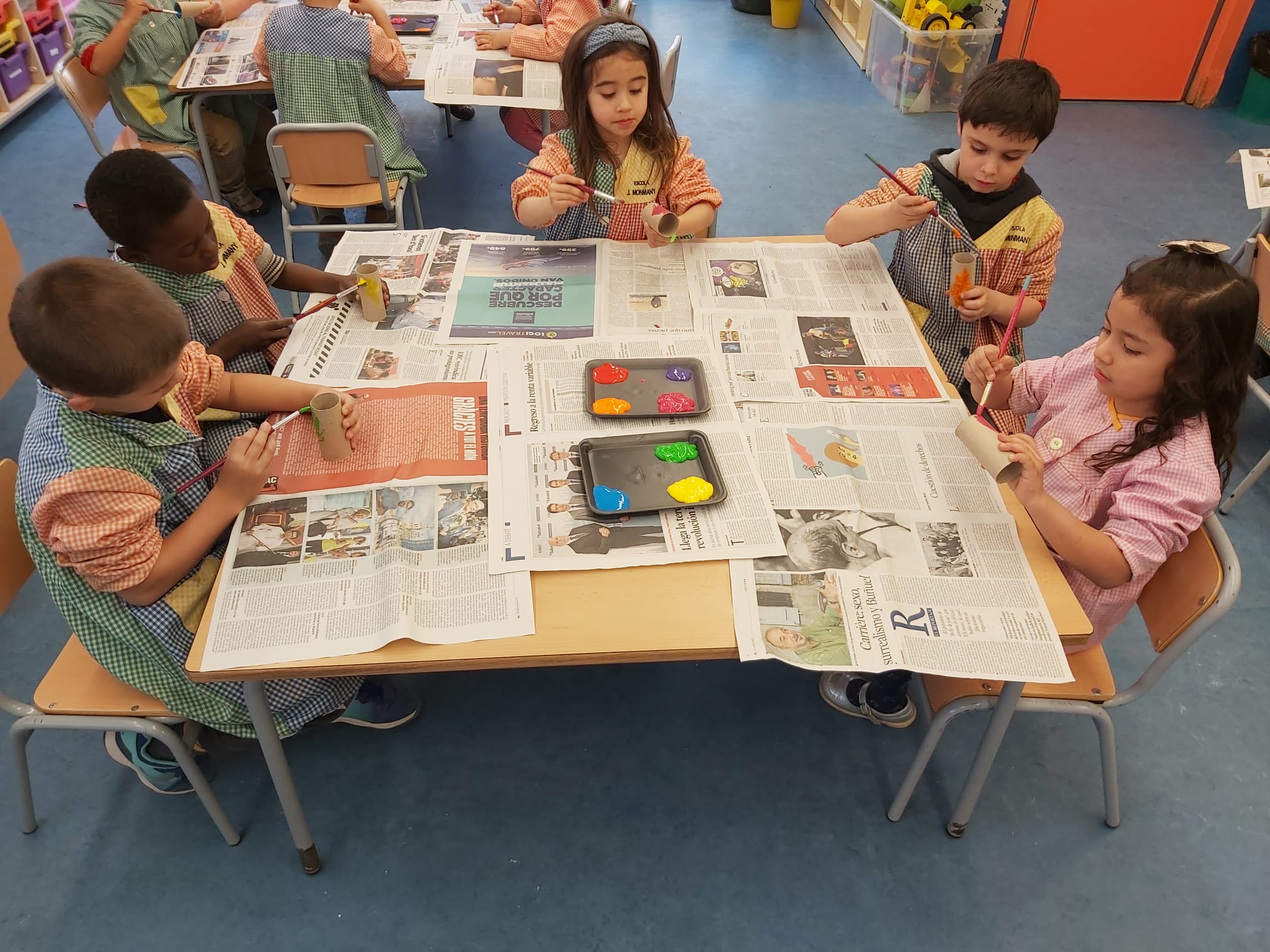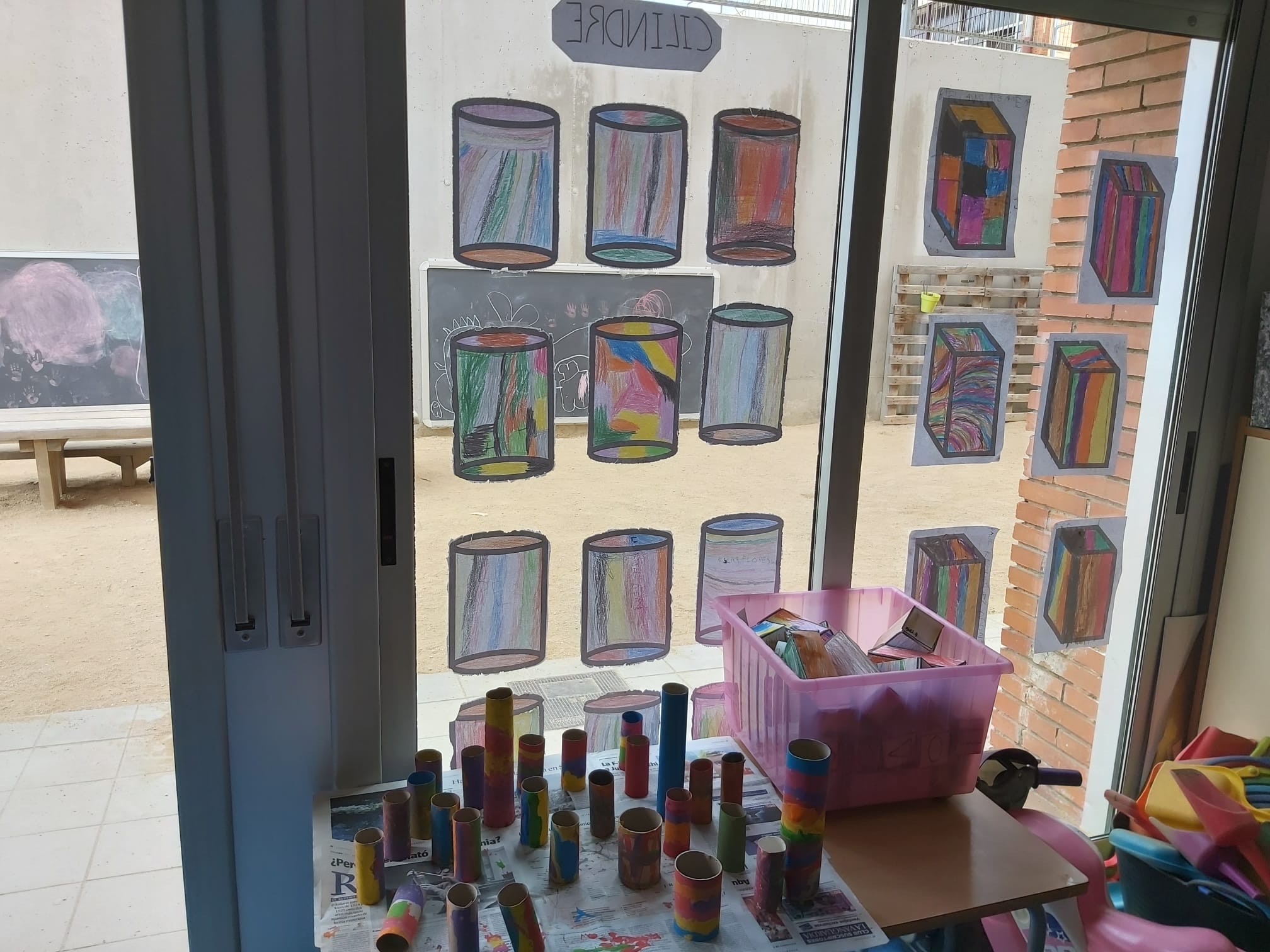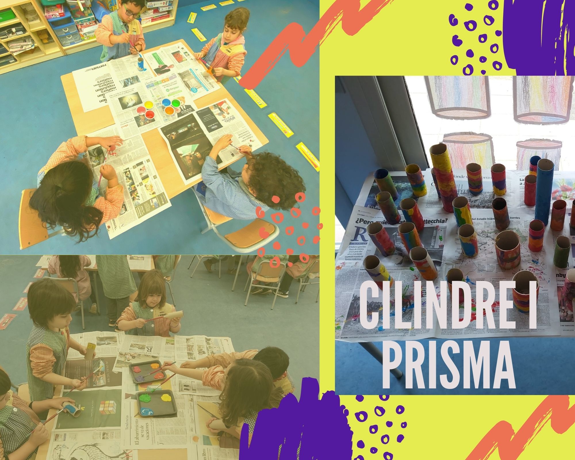 Hola, famílies! Aquesta setmana les gralles i les trompetes hem repassat el cilindre i el prisma. Ho hem fet en paper, pintant amb molts colors diferents i punxant-los, però també ho hem fet amb rotllos de paper del WC i de cuina amb pintura per tal de representar-los amb volum. Per tant hem fet la representació del mateix en dues dimensions, tot i que aquestes formes geomètriques en tenen tres. Ens ho hem passat d’allò més bé!