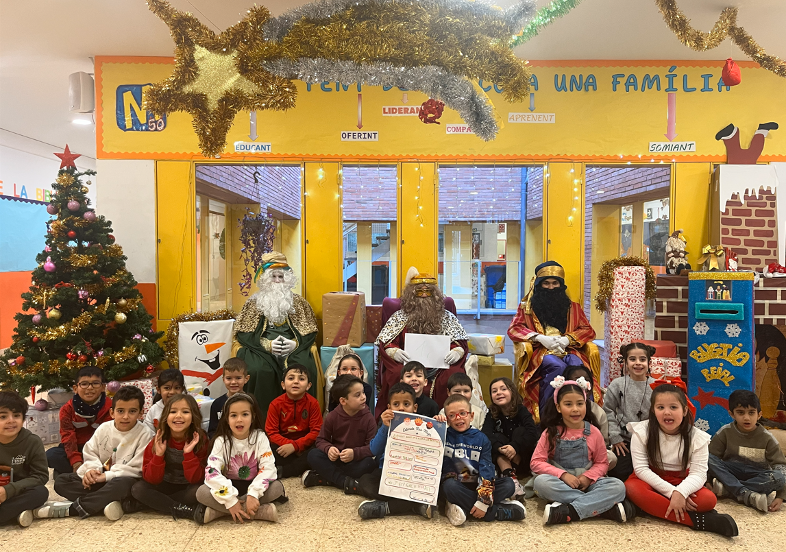 Entre tots i totes vam escriure la carta als Reis de la classe 👑📜 i la vam entregar als patges amb molta emoció ✨. I sabeu què? Ens van regalar una taula de ping-pong nova per al pati 🏓🎁