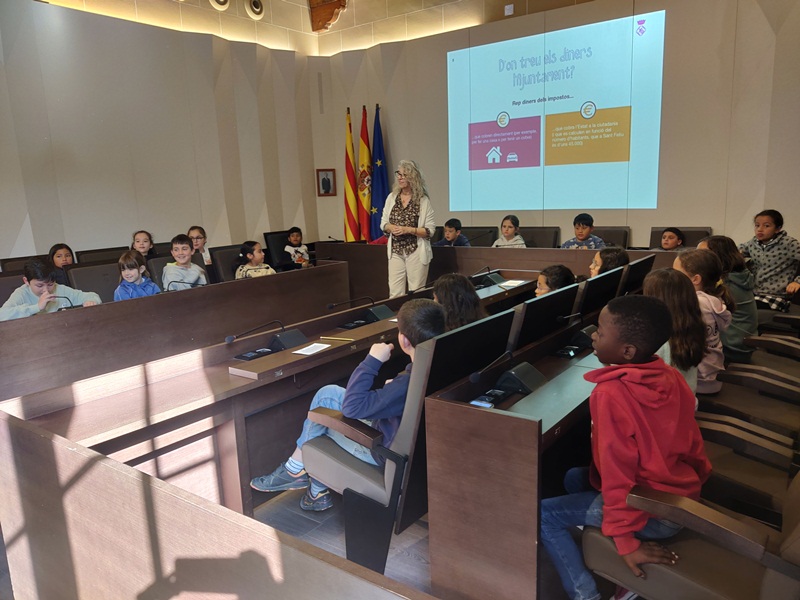 El passat dijous, l’alumnat de 3r va fer una visita a l’Ajuntament. Va poder visitar la Sala de plens i allà va fer una entrevista a l’alcaldessa de Sant Feliu, Lourdes Borrell.