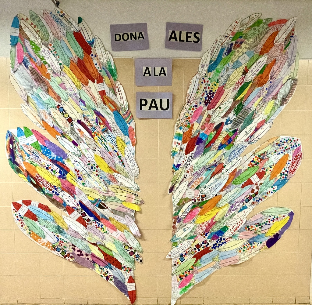 El lema d’aquest any ha estat: Donem ales a la pau. Per aquest motiu, hem intercanviat, amb totes les entitats col·laboradores, les plomes que havíem decorat com a símbol de pau.