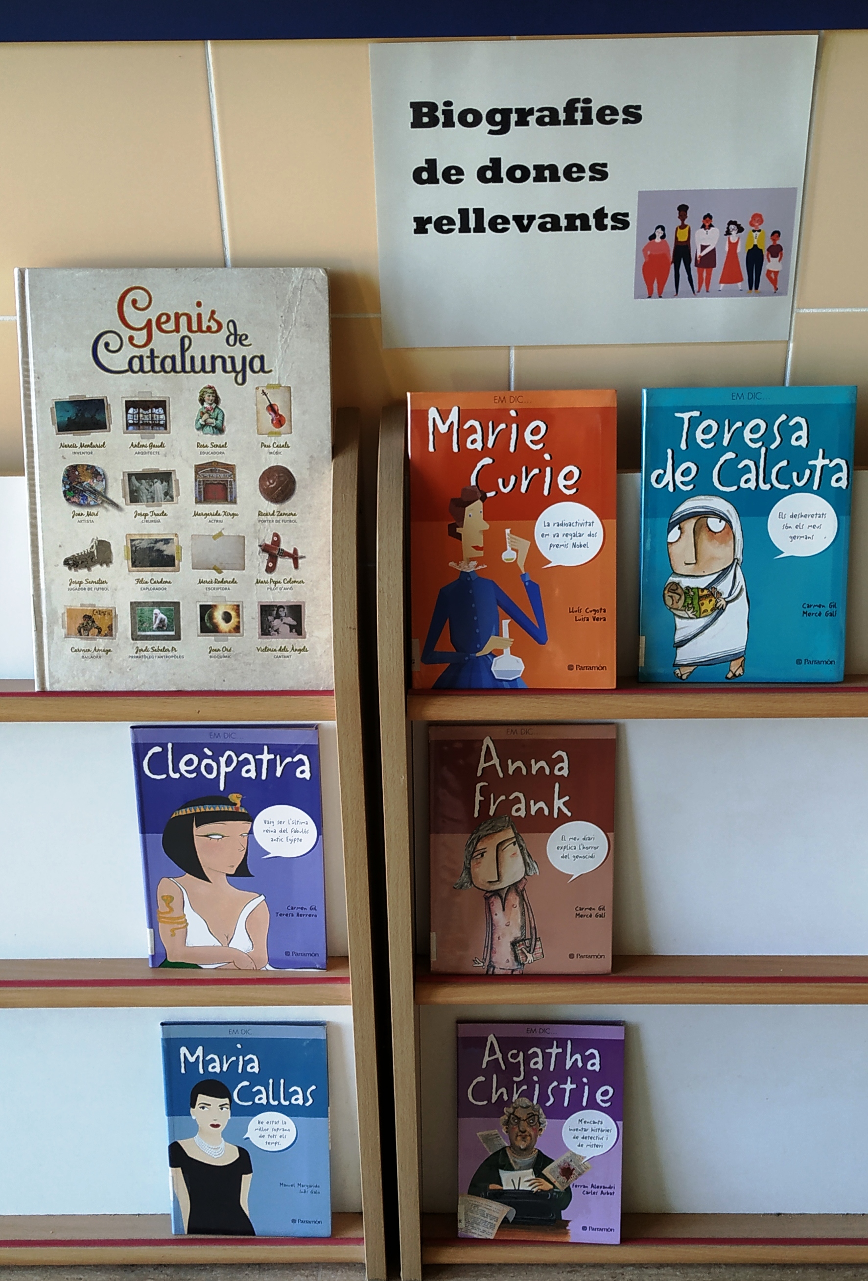 Per això durant unes setmanes, a la biblioteca de l’escola trobareu una petita exposició de biografies de diferents dones rellevants en la història de la nostra societat: pedagogues, matemàtiques, científiques, escriptores…