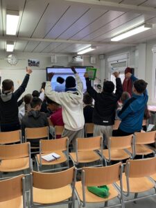 Durant la videotrucada vam formular i respondre preguntes d’informació personal amb els nostres nous amics i amigues. Finalment, també vam compartir algunes paraules amb les nostres llengües maternes.