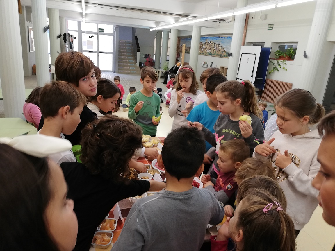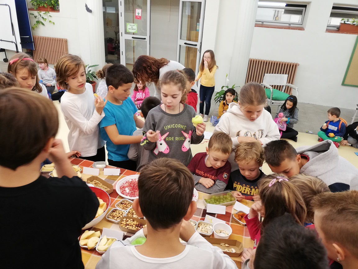 Dijous és dia de fruita, i avui ,els menuts de l’escola, han preparat un esmorzar molt saludable amb els fruits de la tardor que han anat portant al llarg del mes d’octubre.