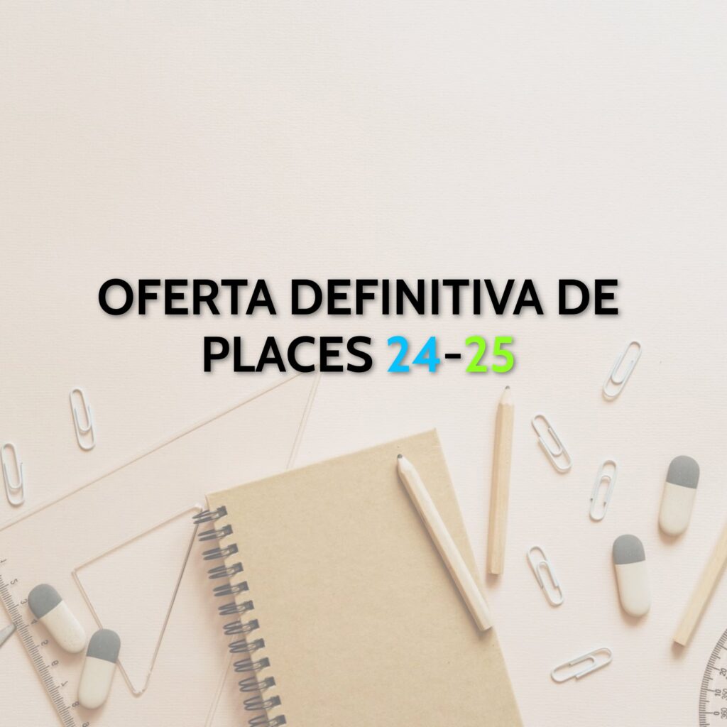 OFERTA DE PLACES DEFINITIVA CURS 2024-25 admin07/06/24 Famílies! Compartim amb vosaltres l’oferta de places definitives per al curs 2024-25. Feu clic AQUÍ