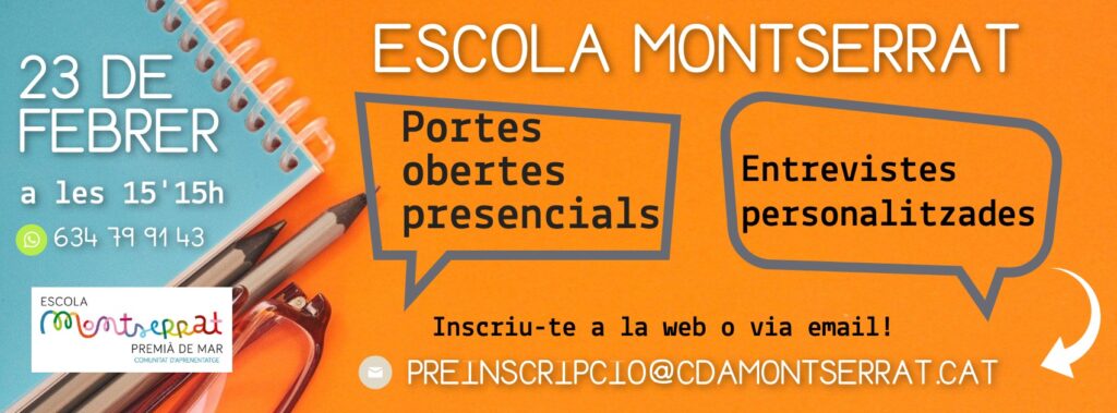 Fes clic AQUÍ i inscriu-te a la jornada de portes obertes per al curs 2023-24! Reserva’t la data, dijous 23 de febrer a les 15’15h.