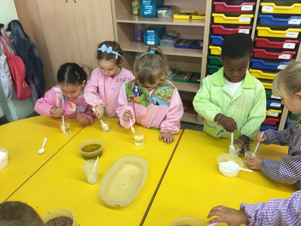 - veuen la densitat dels líquids (aigua i llet, oli, cacao… -barreja de colors-)