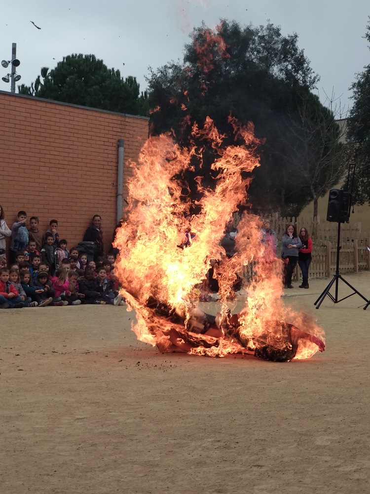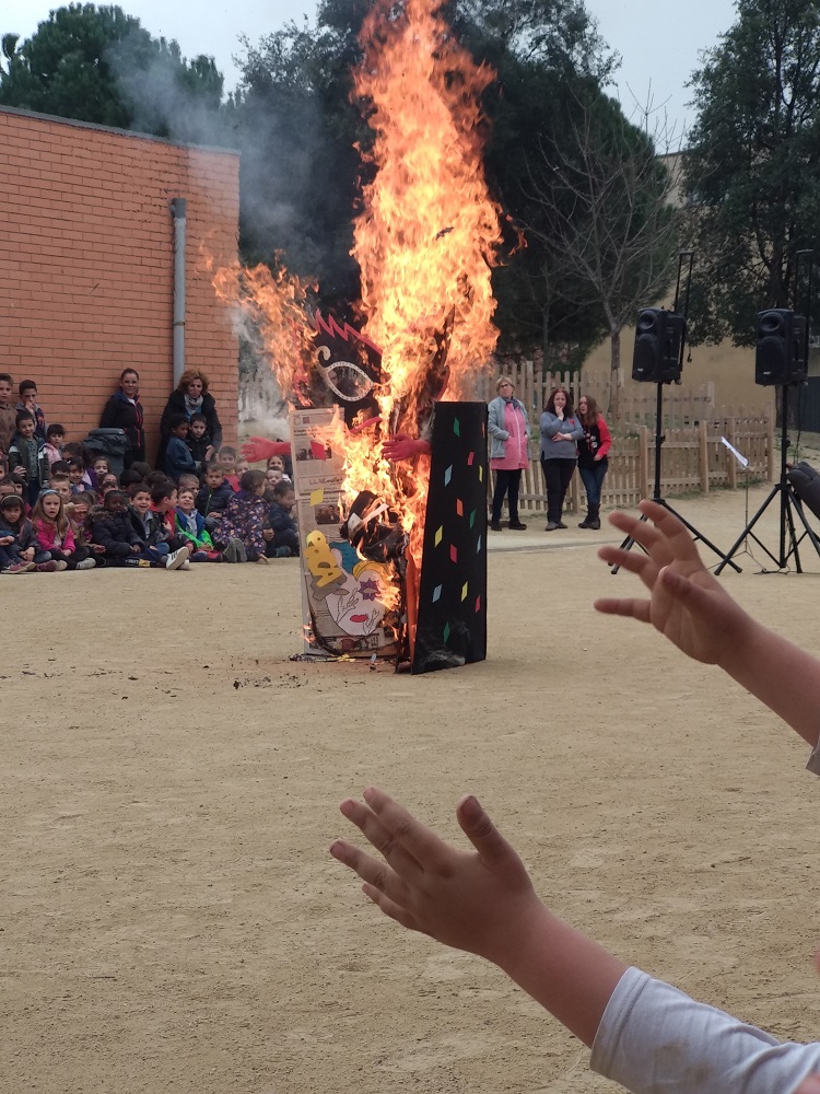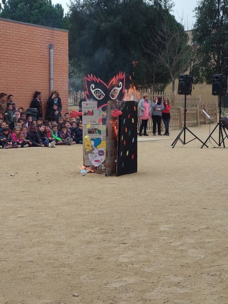 El Rei Carnestoltes ha presidit el carnaval i ha representat l’ambient de disbauxa de la nostra escola. Avui, dimecres de cendra, ha sigut jutjat pel seu mal comportament i condemnat a mort. Després de llegir el testament, sempre impregnat de missatges per les classes i per a l’equip educatiu, ha sigut cremat en el pati. Tot seguit alumnes de P5 han procedit a fer l’enterrament de la sardina. D’aquesta manera es representa el final del període de carnaval i l’inici de la Quaresma, set setmanes presidides per l’austeritat i l’abstinència. Finalment ha fet l’entrada al pati la Vella Quaresma, aquella velleta amb set cames que va perdent d’una en una a mesura que van passant les setmanes.